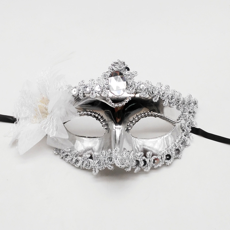 百合花面具 万圣节威尼斯公主舞会面具尖头电镀喷漆 侧花半脸面具