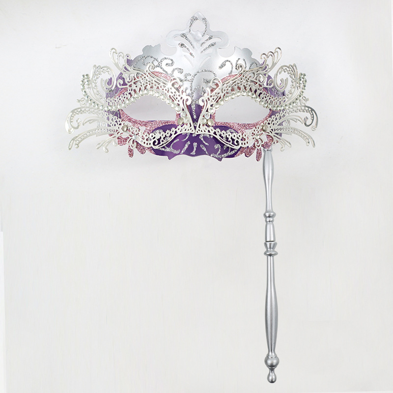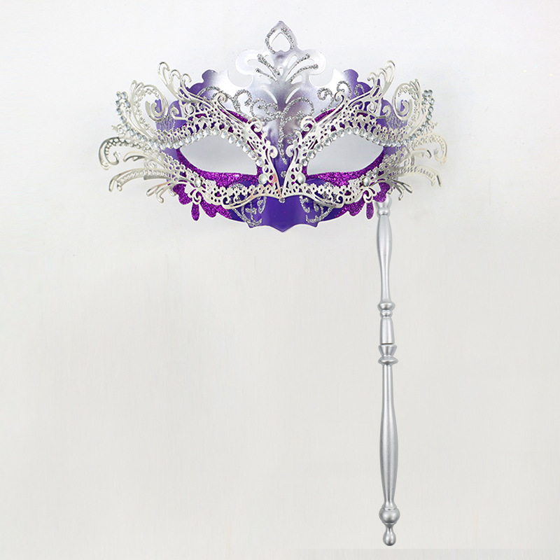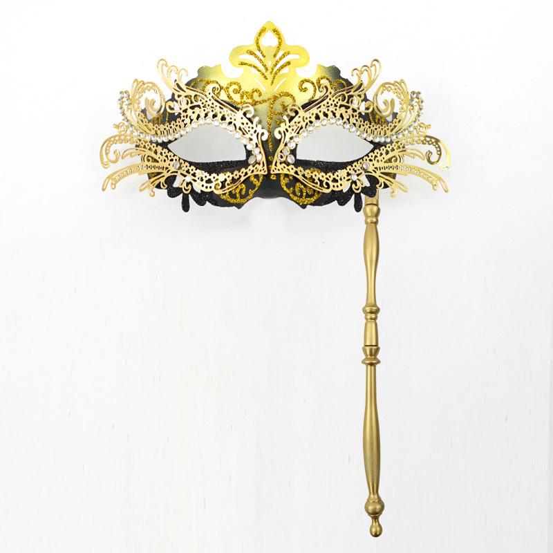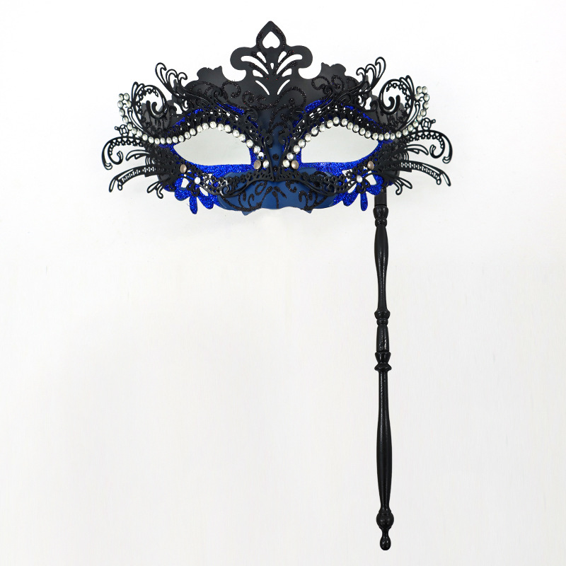 亚马逊派对情趣金属面具镶钻成人儿童手持铁艺半脸面具可拆卸
