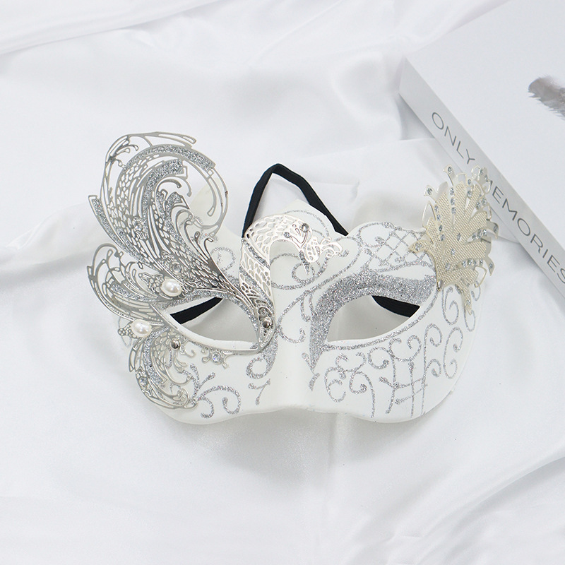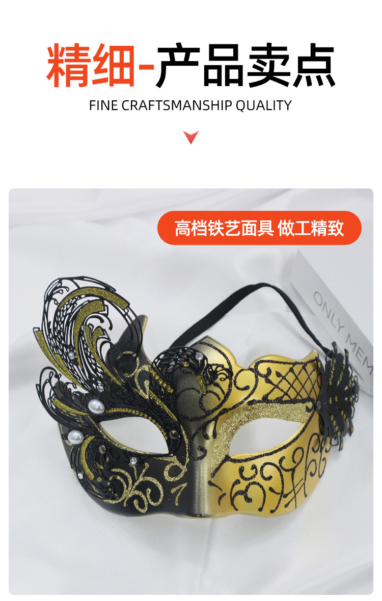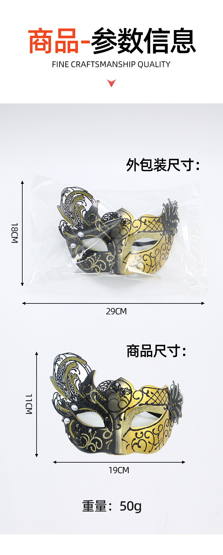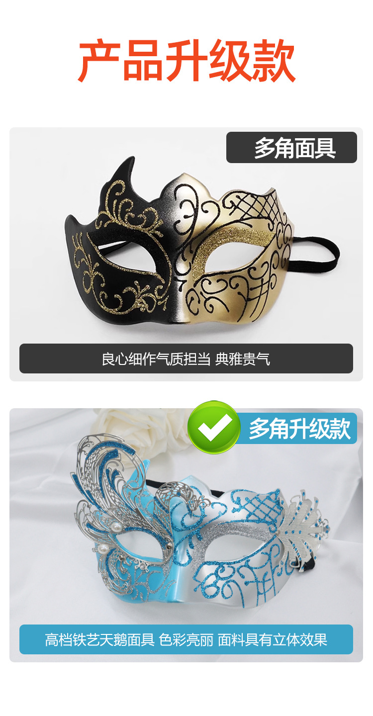 复古半脸面具高级感男士派对酒吧万圣节彩绘多角天鹅面具假面舞会