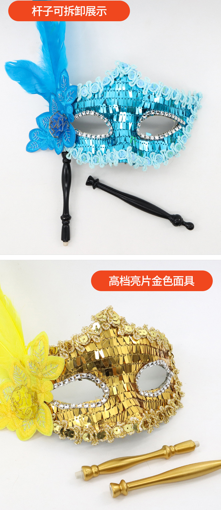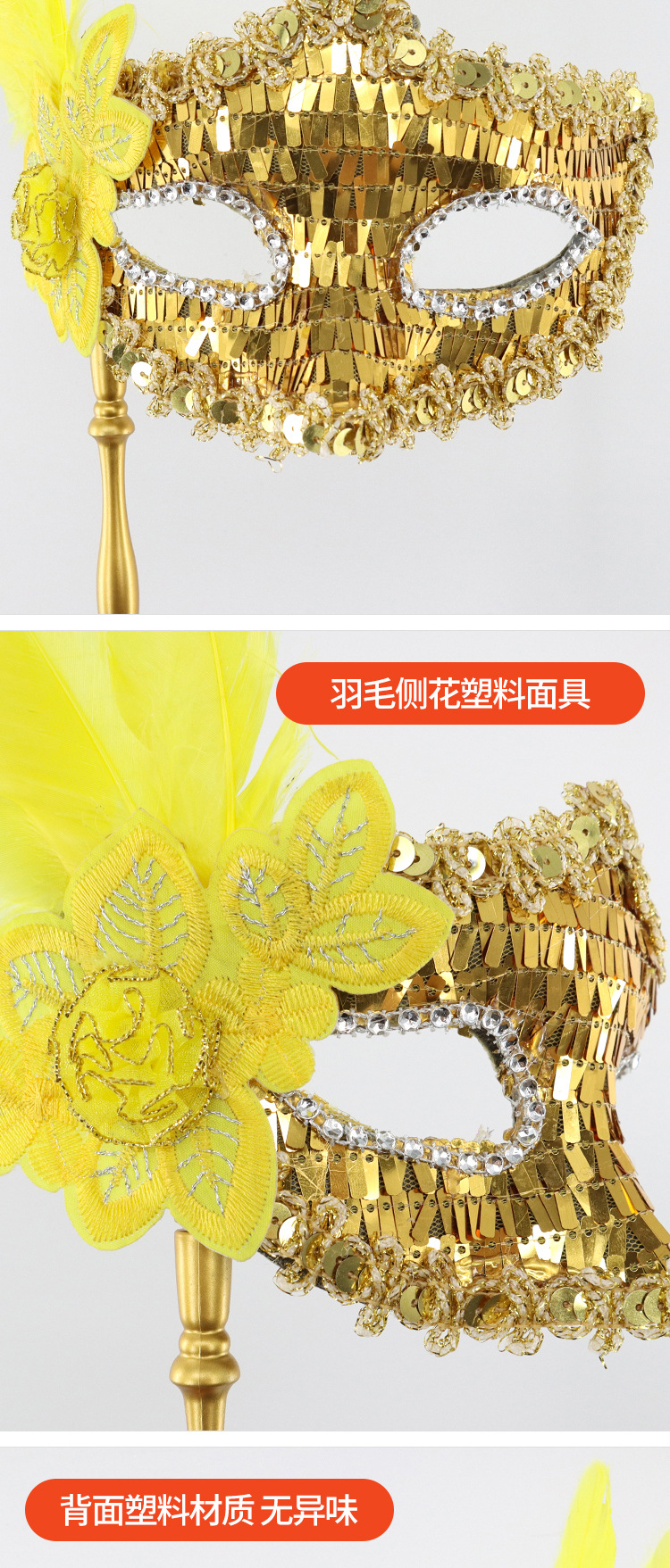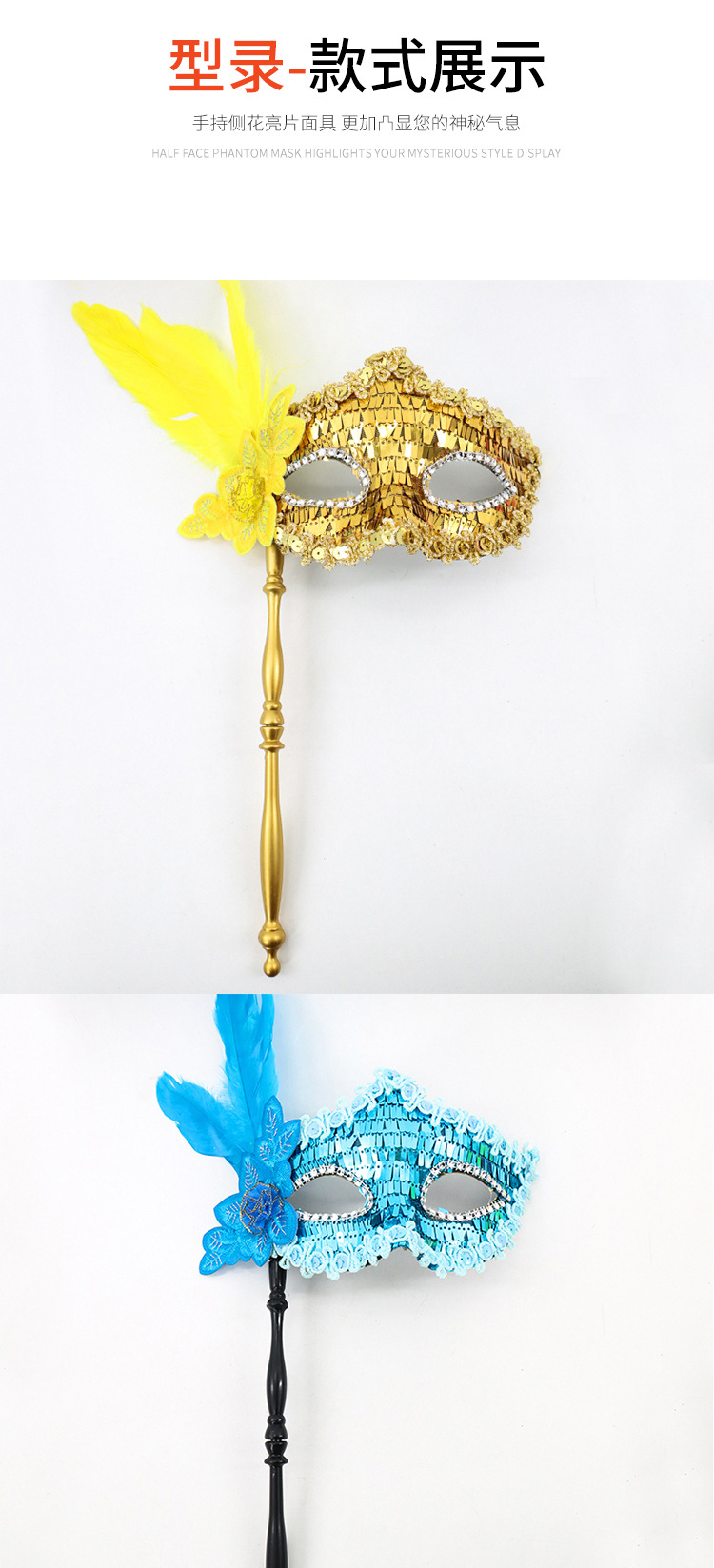 万圣节化妆舞会公主神秘感手持测花亮片半脸面具威尼斯女王眼罩