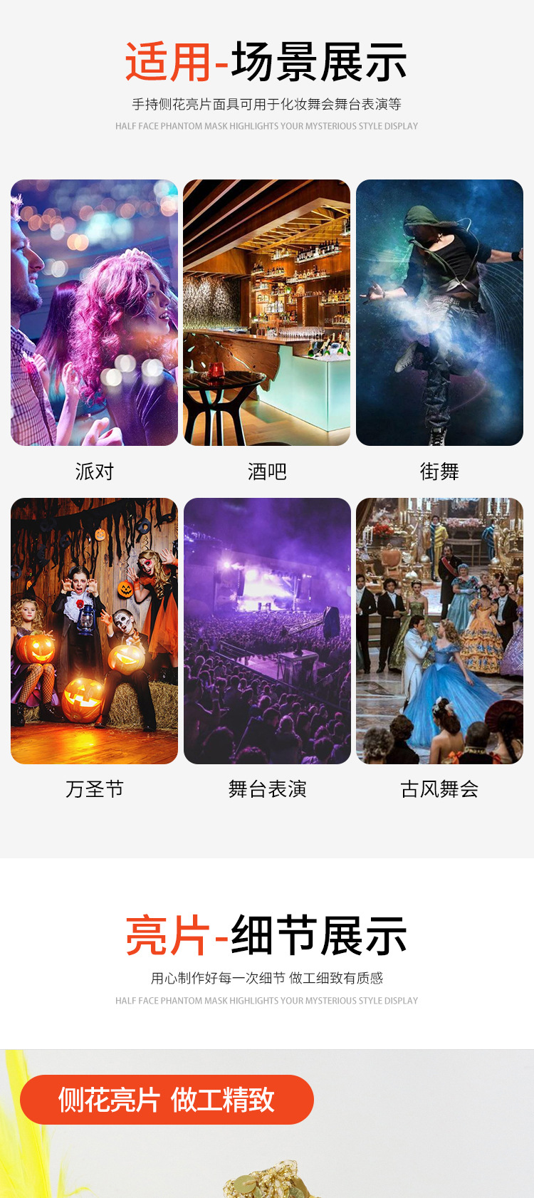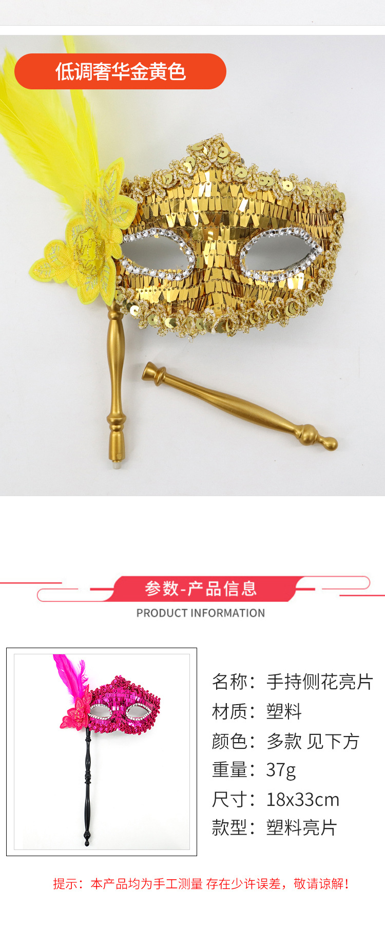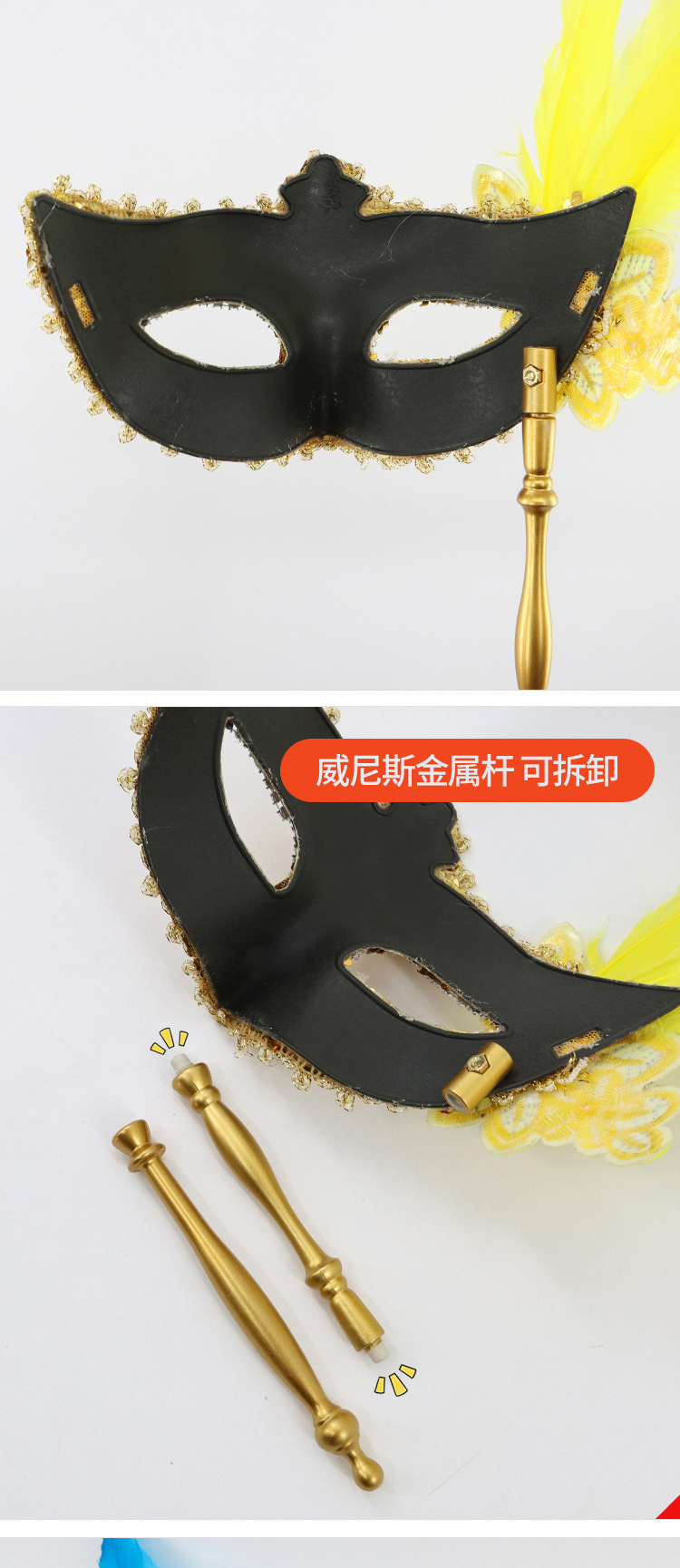 万圣节化妆舞会公主神秘感手持测花亮片半脸面具威尼斯女王眼罩