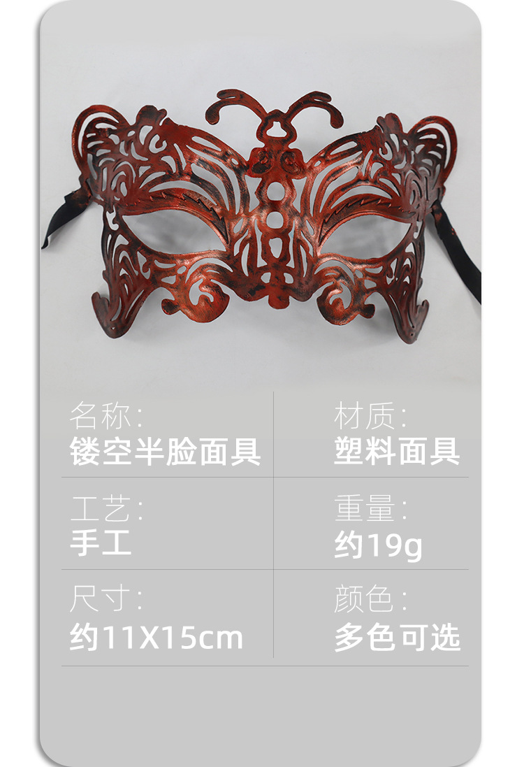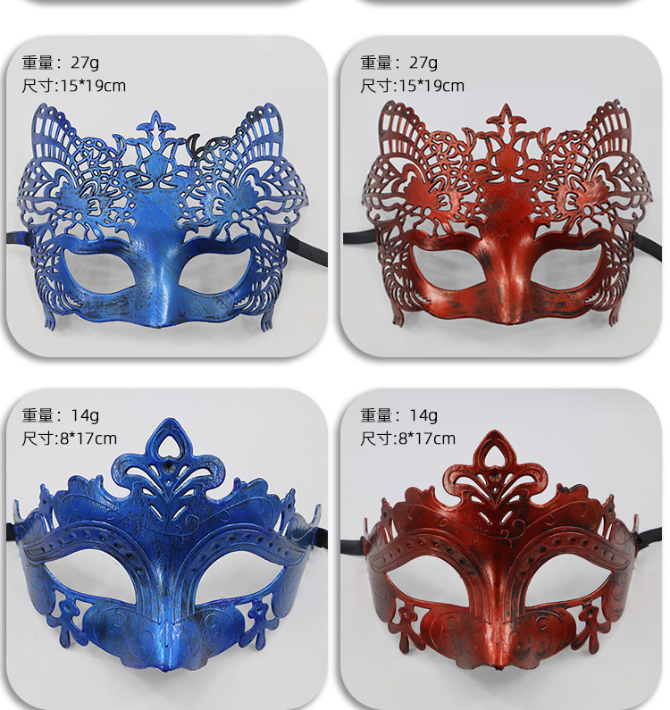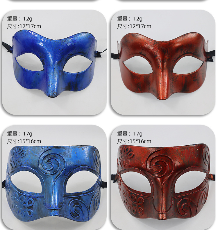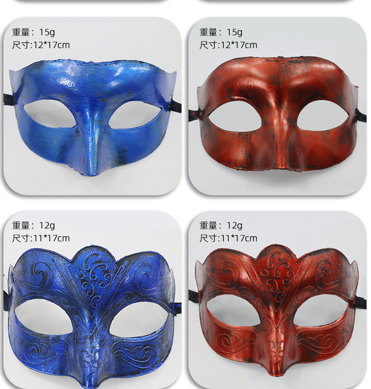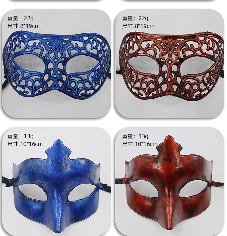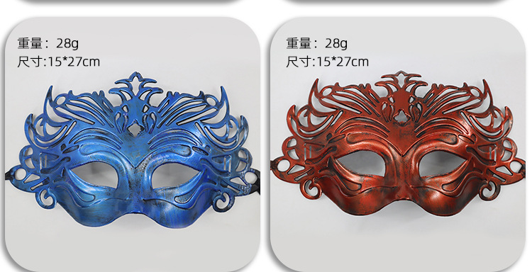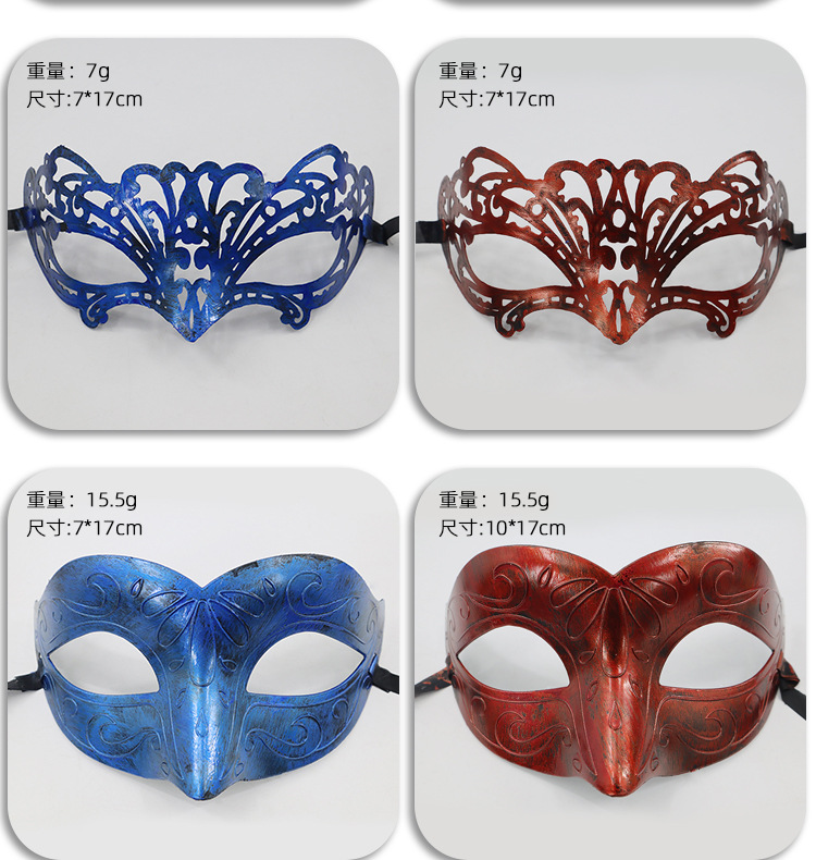 爆款万圣节化装舞会复古半脸面具派对道具酒吧化妆舞会仿古红蓝