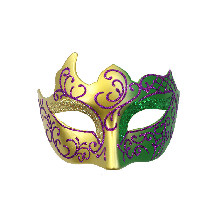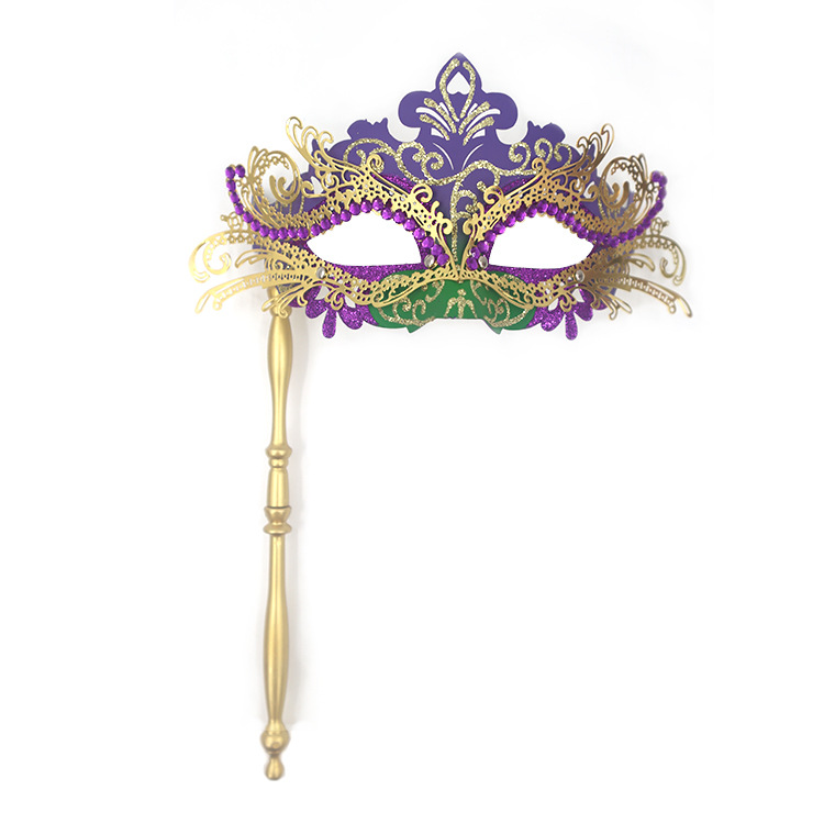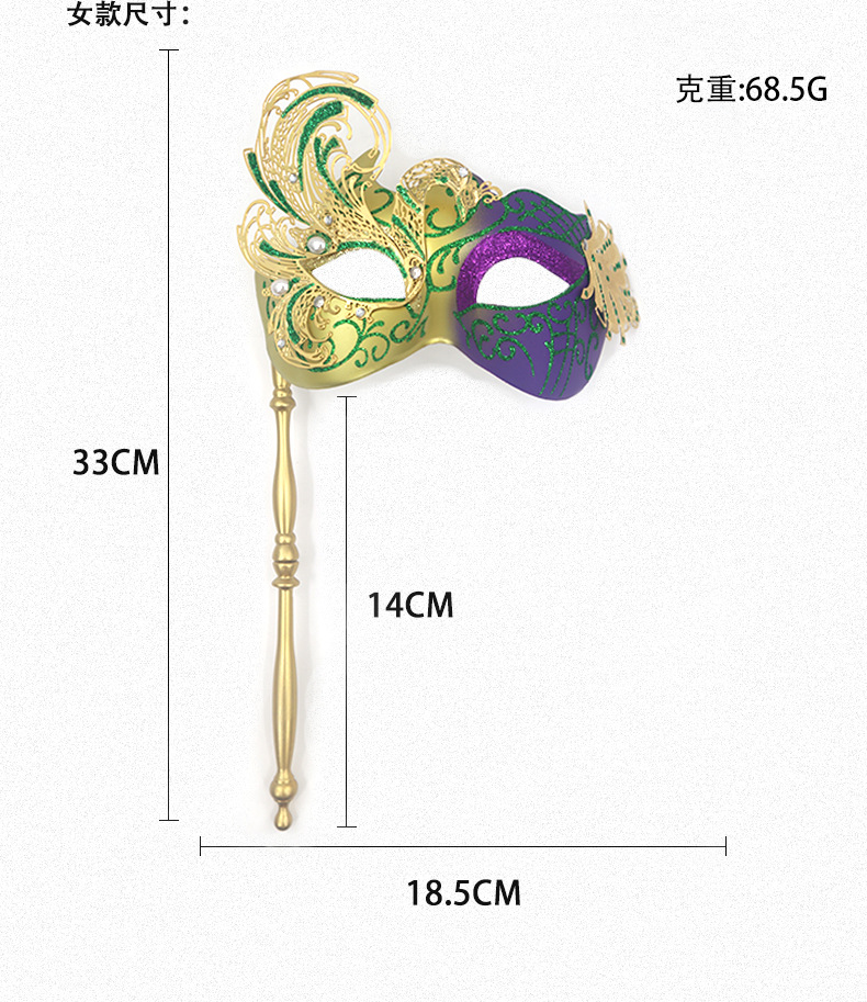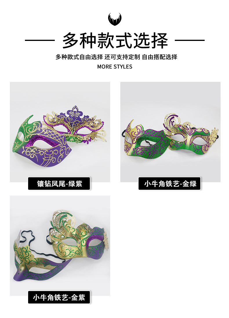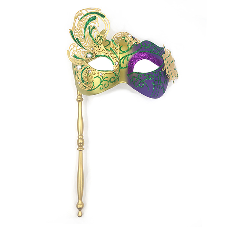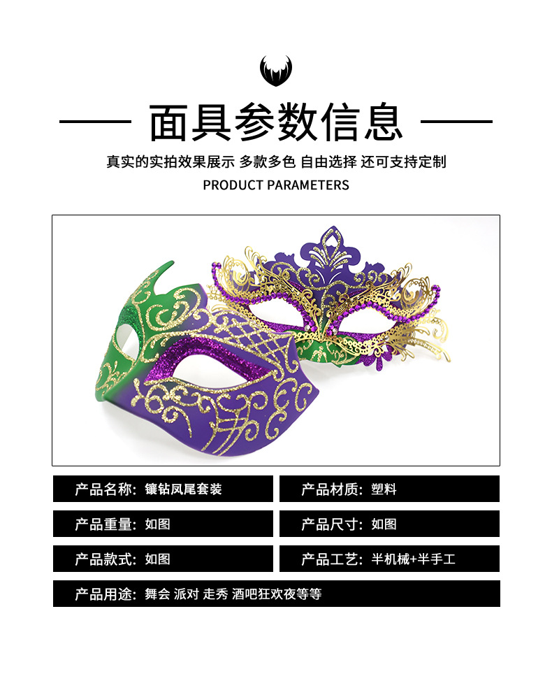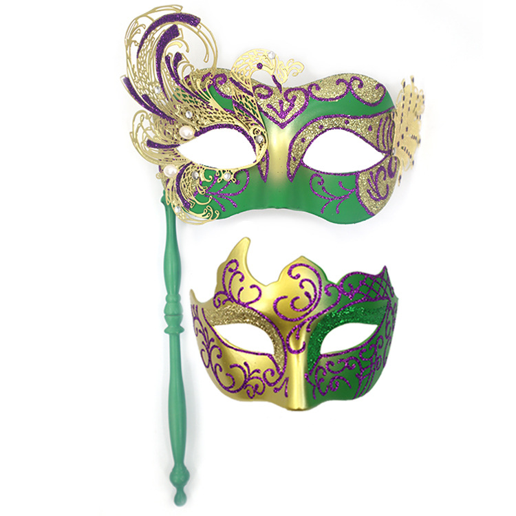 巴西新奥尔良节日狂欢节彩绘半脸面具套装手持棒珠链亮片情侣舞会