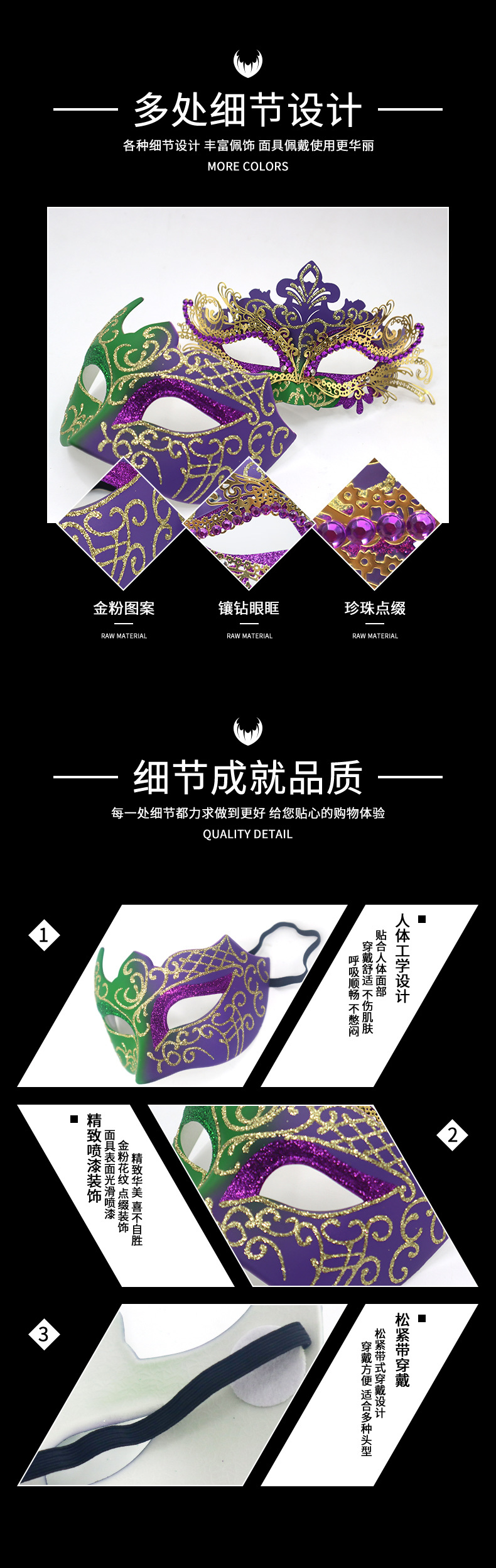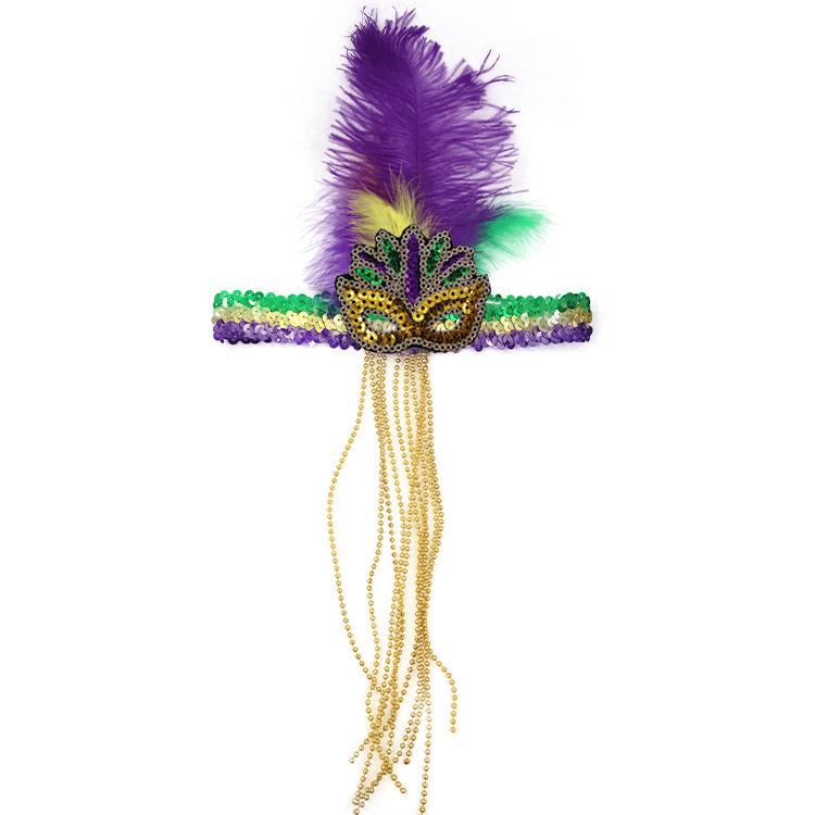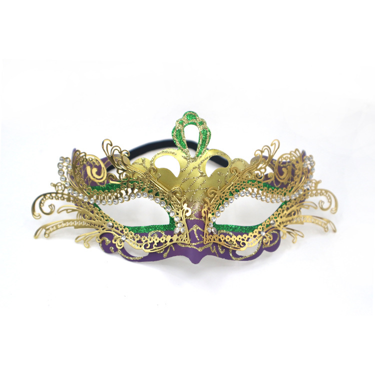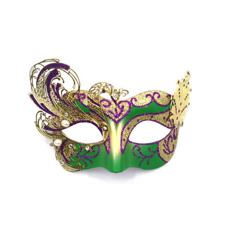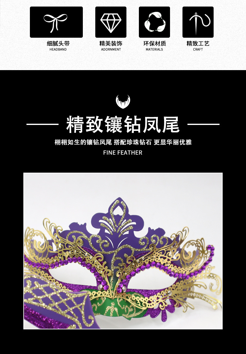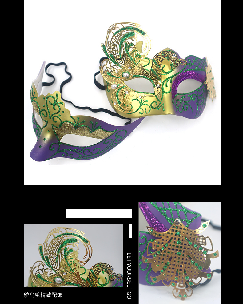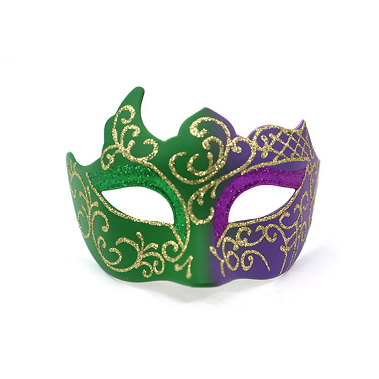 巴西新奥尔良节日狂欢节彩绘半脸面具套装手持棒珠链亮片情侣舞会