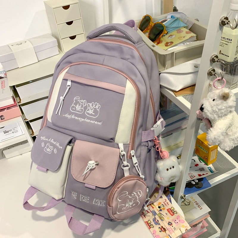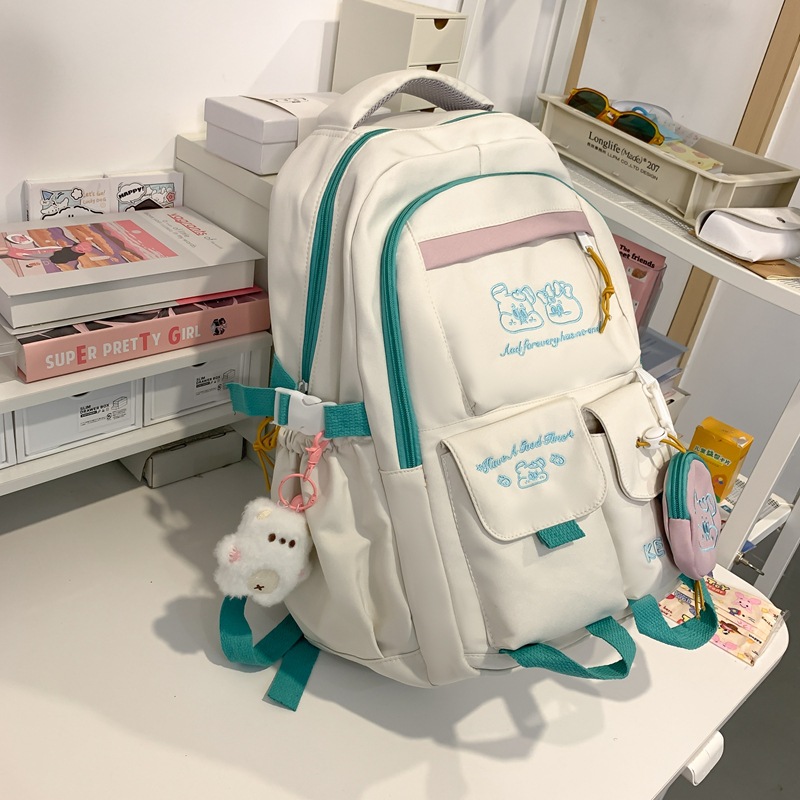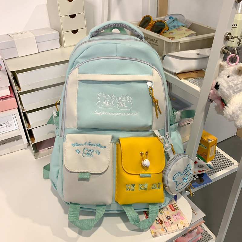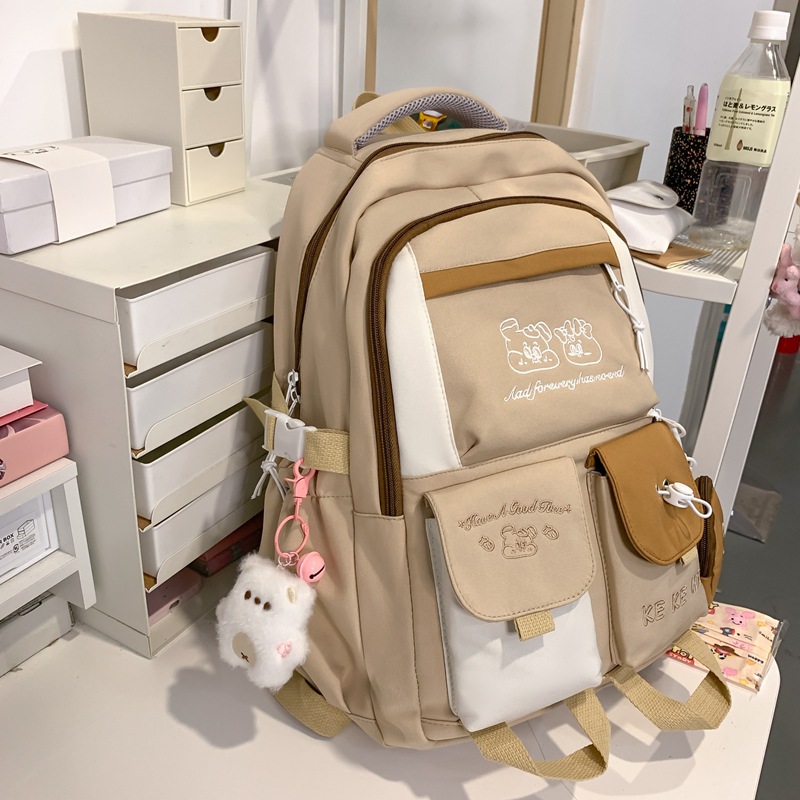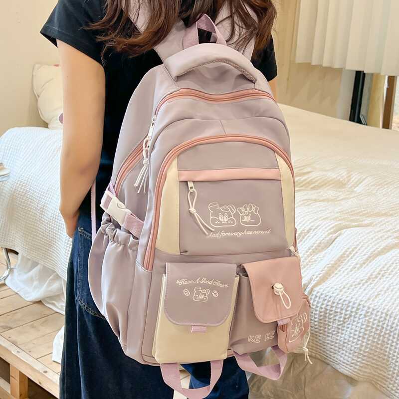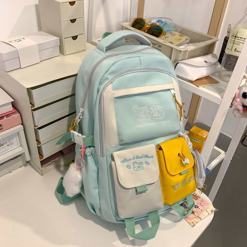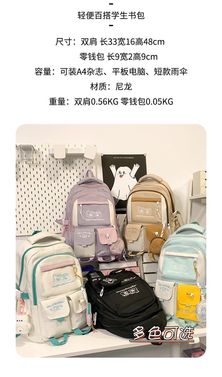 学院风撞色书包小众设计轻便双肩包上课通勤补习背包