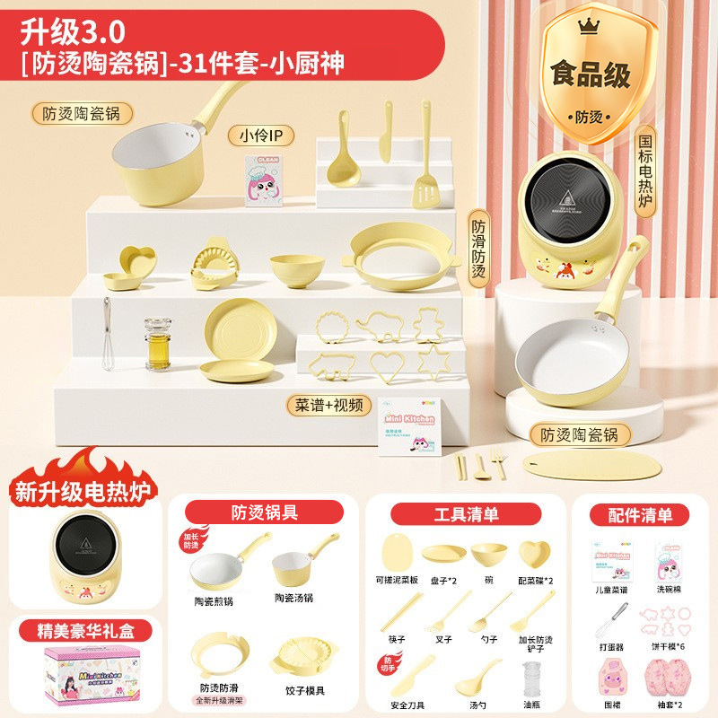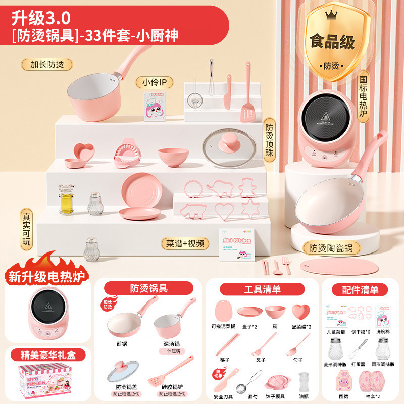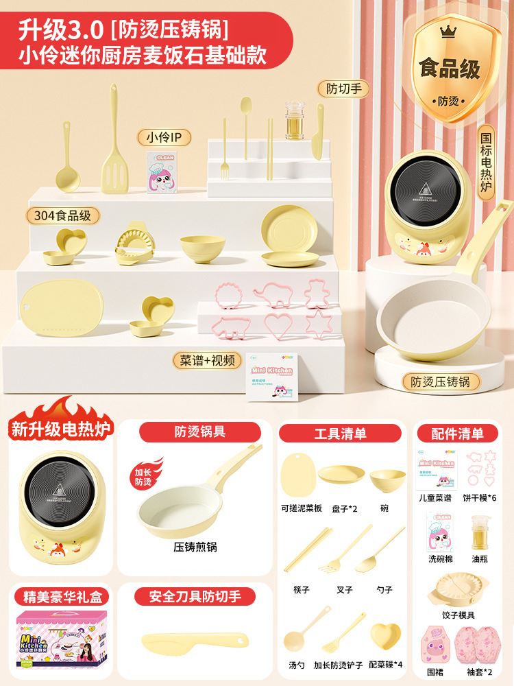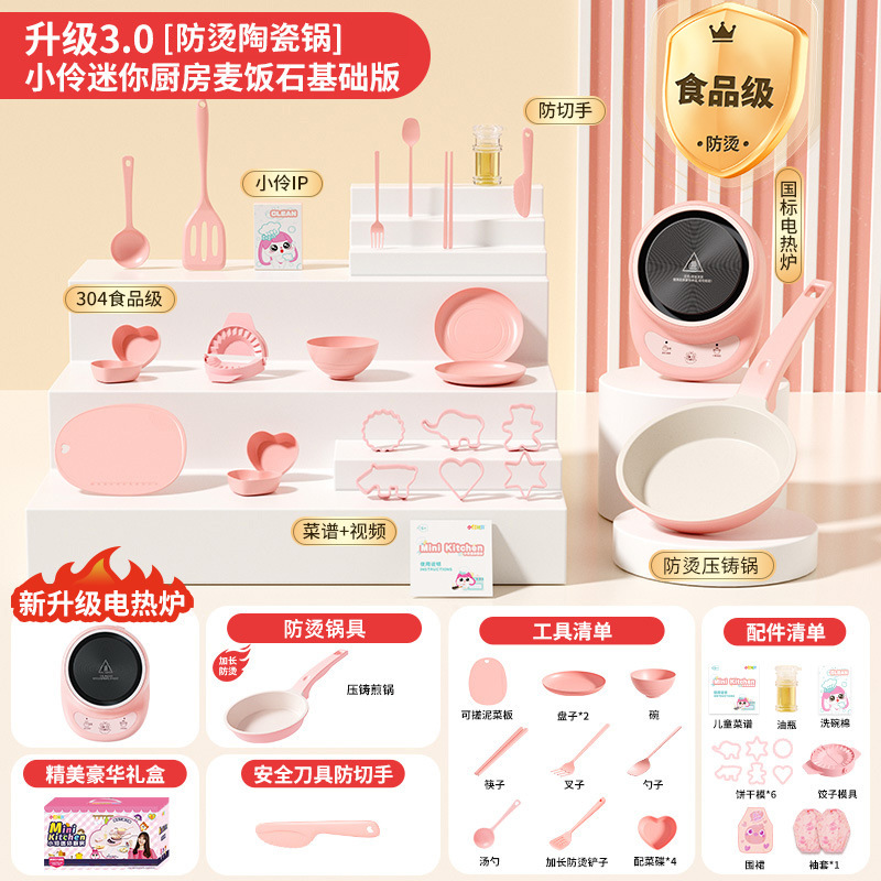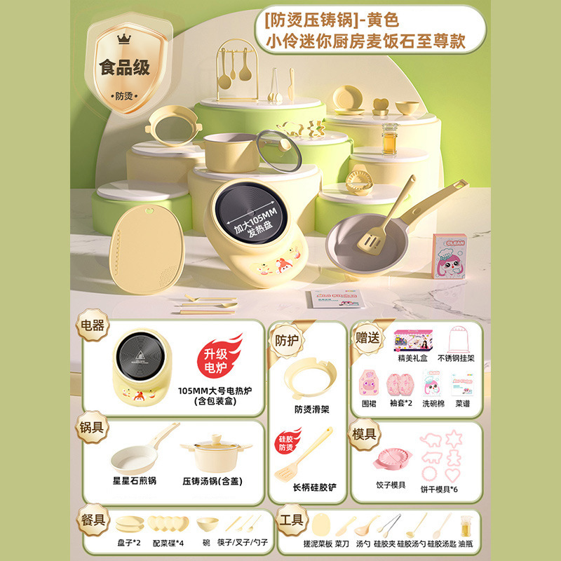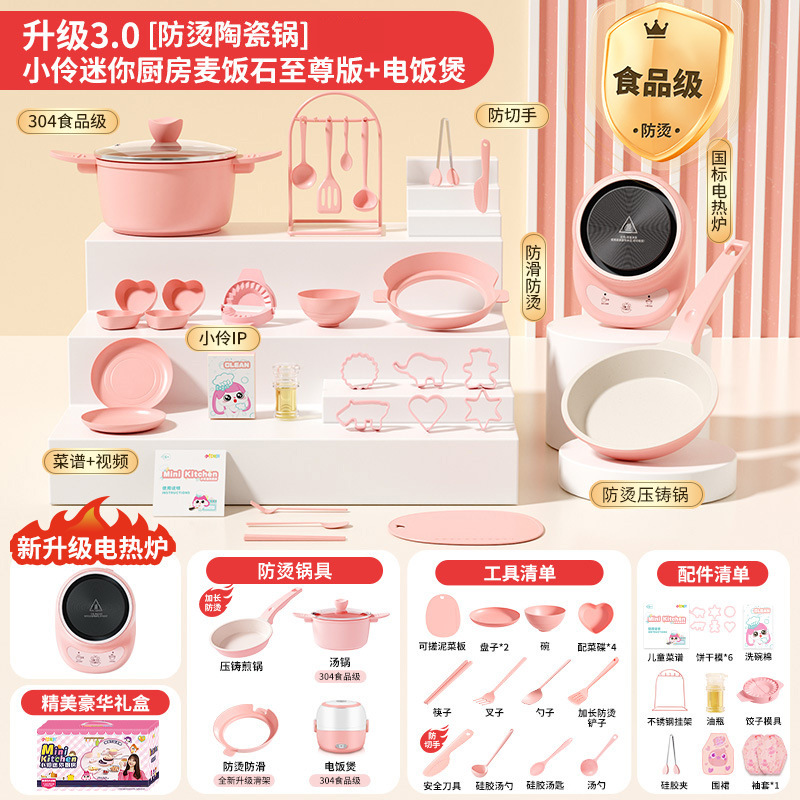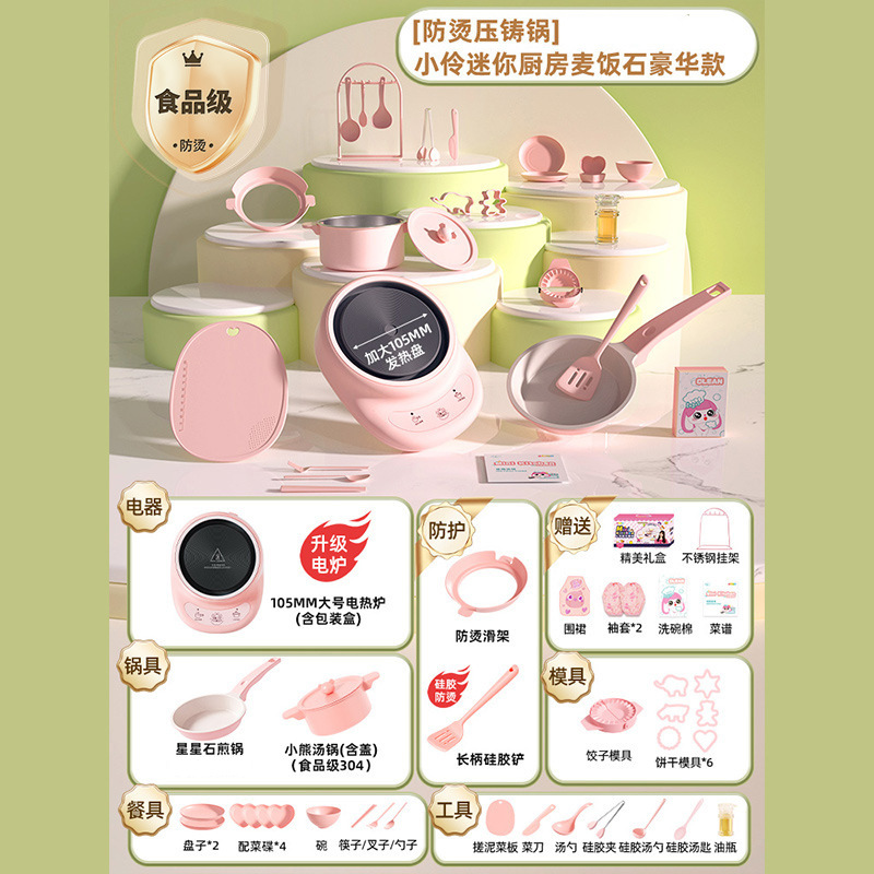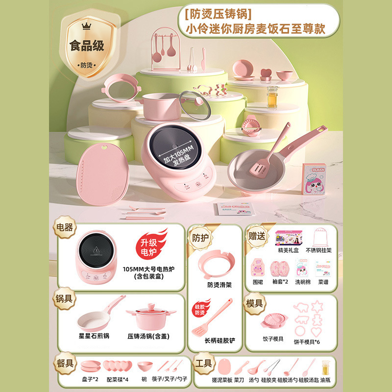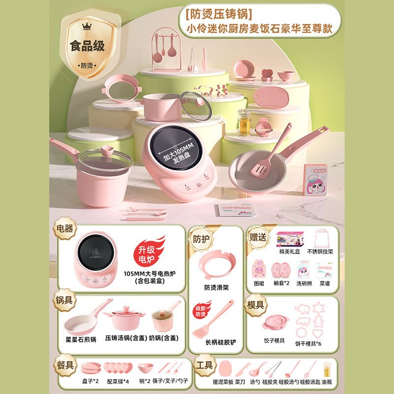 小伶玩具迷你厨房灶真煮食玩全套儿童女孩过家家做饭玩具防烫辅食