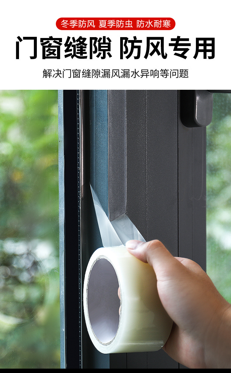 透明门窗防风胶带缝隙挡风防虫封窗保温高粘无痕密封胶带厂家直销