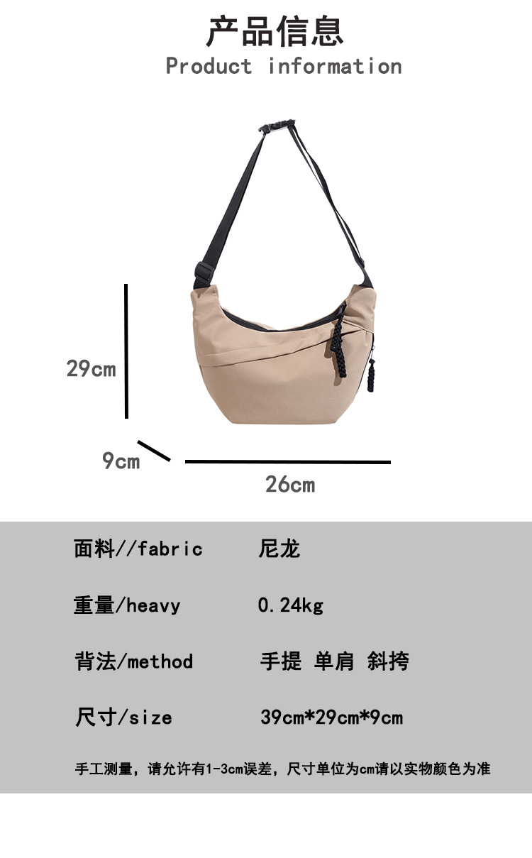 2024新款尼龙饺子包包女潮搭单肩斜挎包轻便腋下包小众简约帆布包