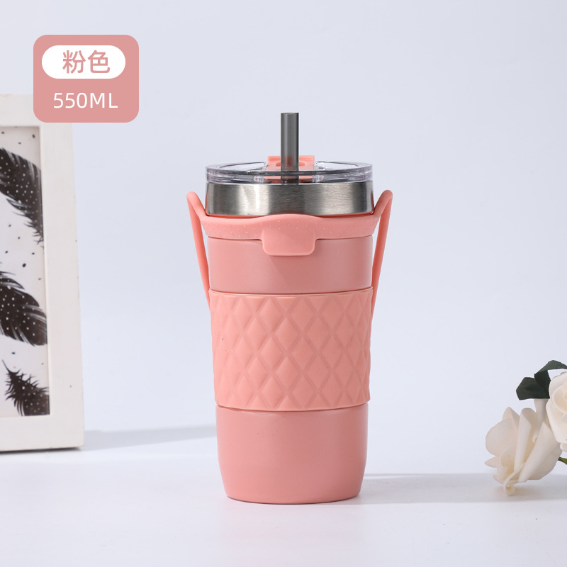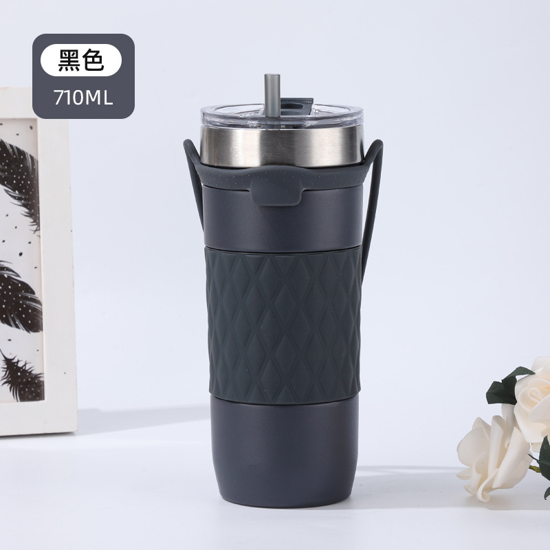 亚马逊爆款不锈钢汽车杯大容量真空保温杯便携式手提吸管水杯批发