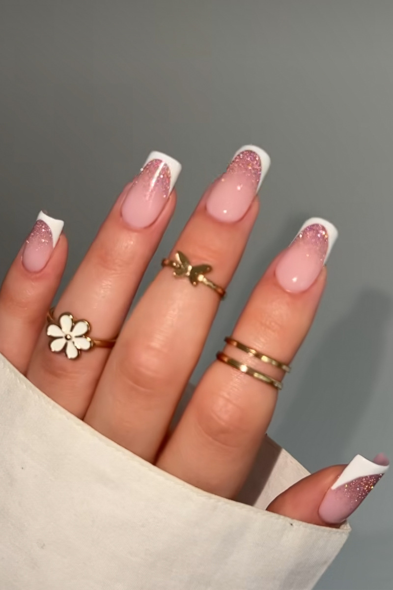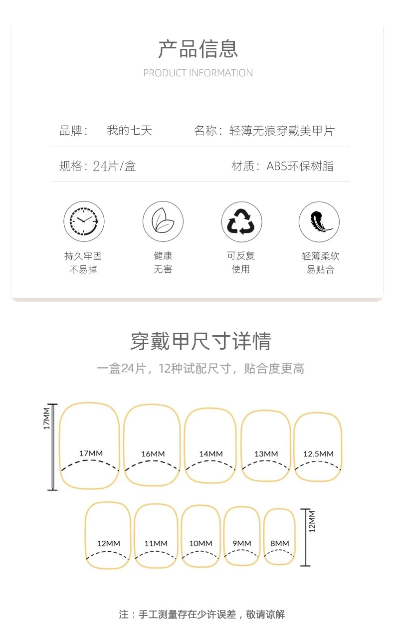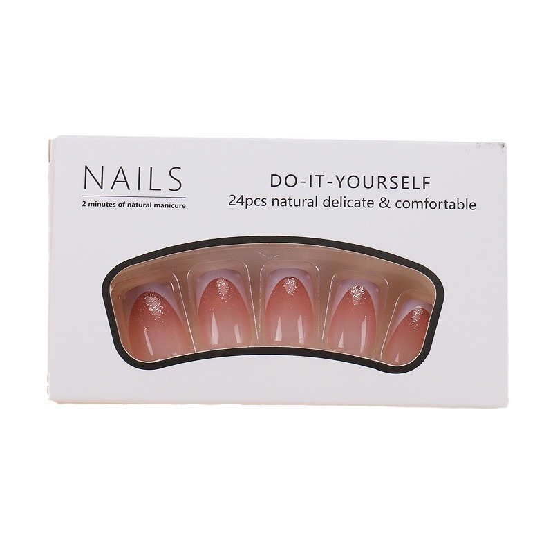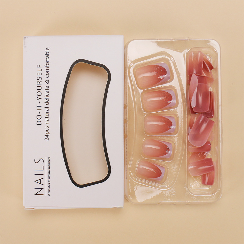 跨境穿戴甲短款方形法式白边美甲贴片成品24片渐变闪粉假指甲片