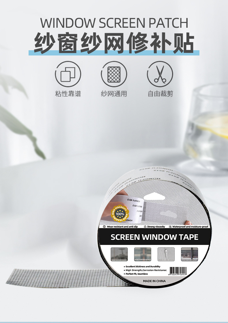 跨境纱窗贴Screen repair tape防蚊防虫纱网补洞自粘纱窗修补胶带