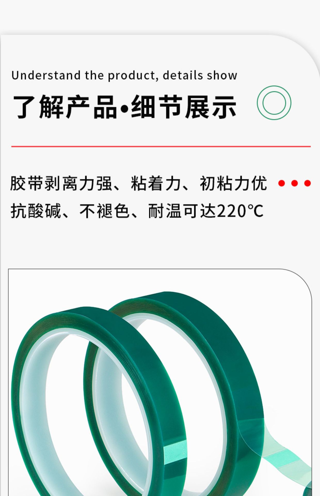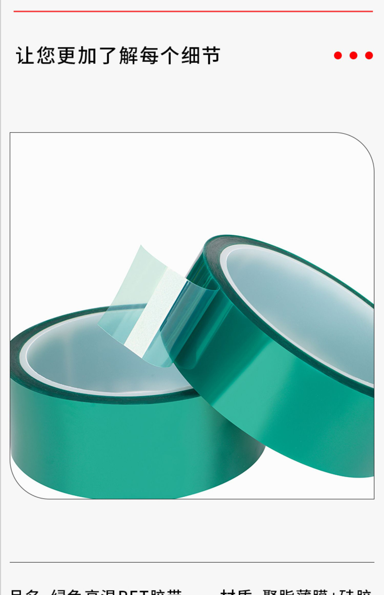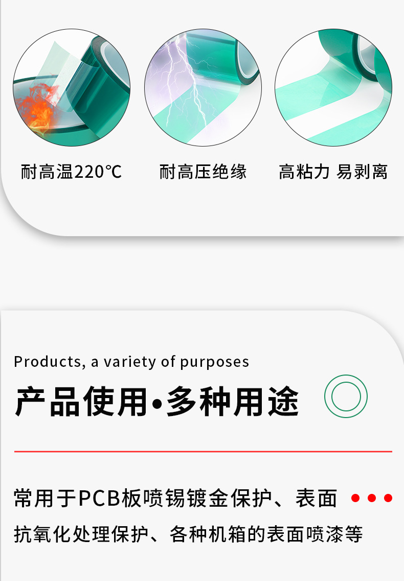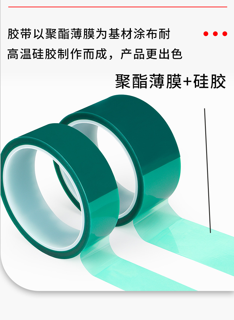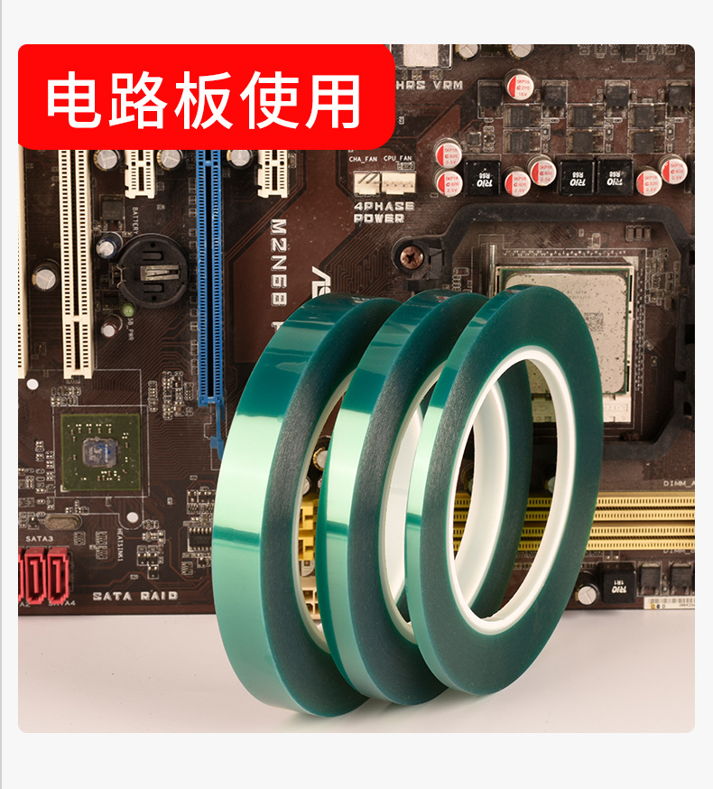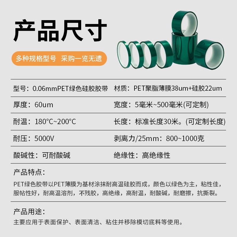 PET绿色高温胶带喷漆遮蔽硅胶带电路板保护膜耐酸碱烤漆高温胶带