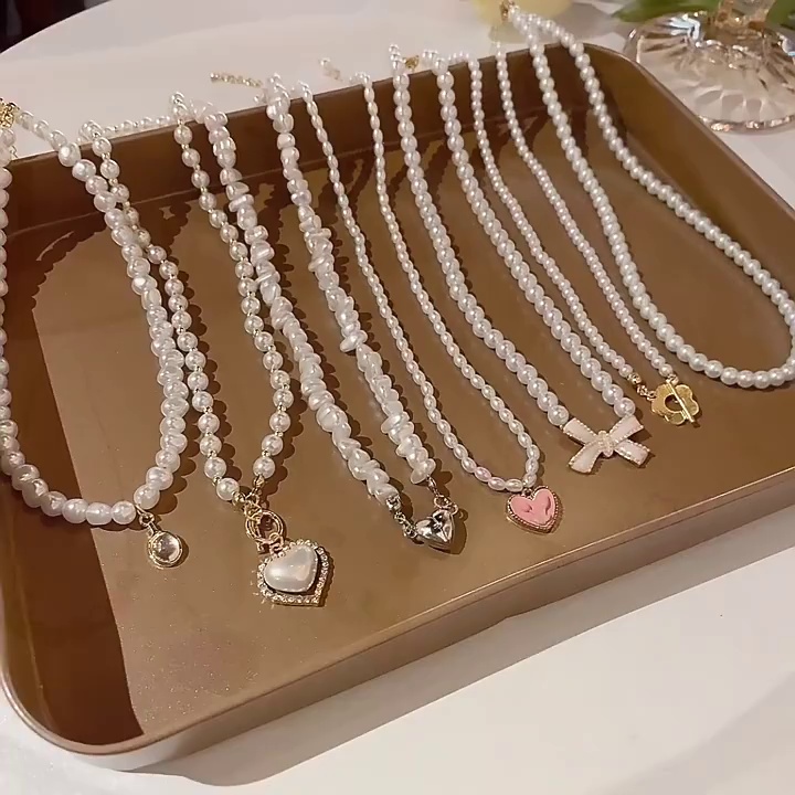 饰品百搭拼接爱心锁骨链轻奢气质串珠项链新款小众珍珠项链女批发