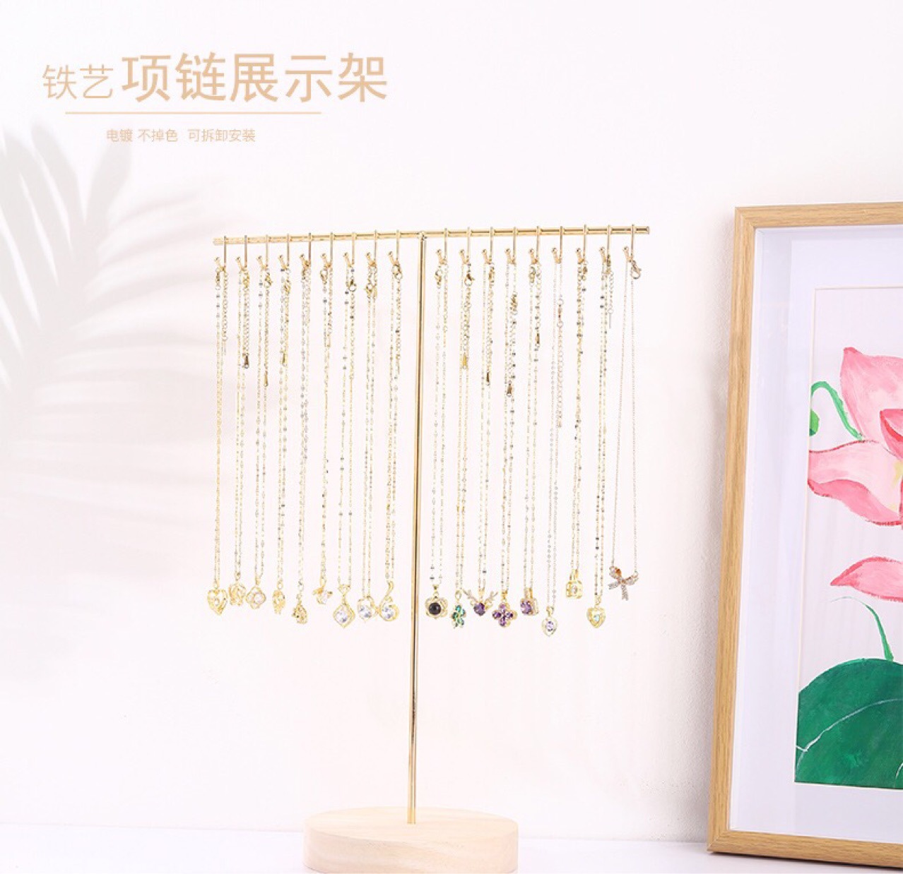 简约铁艺项链展示架家用首饰收纳架挂吊坠项链桌面摆摊饰品展示架