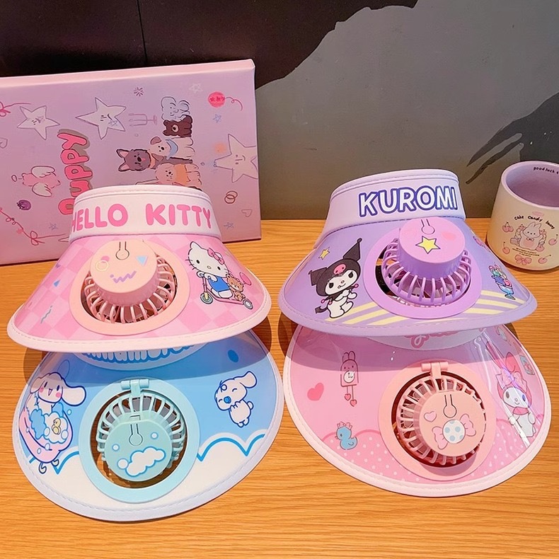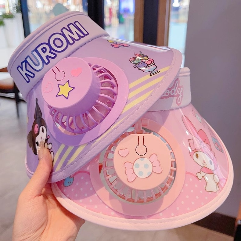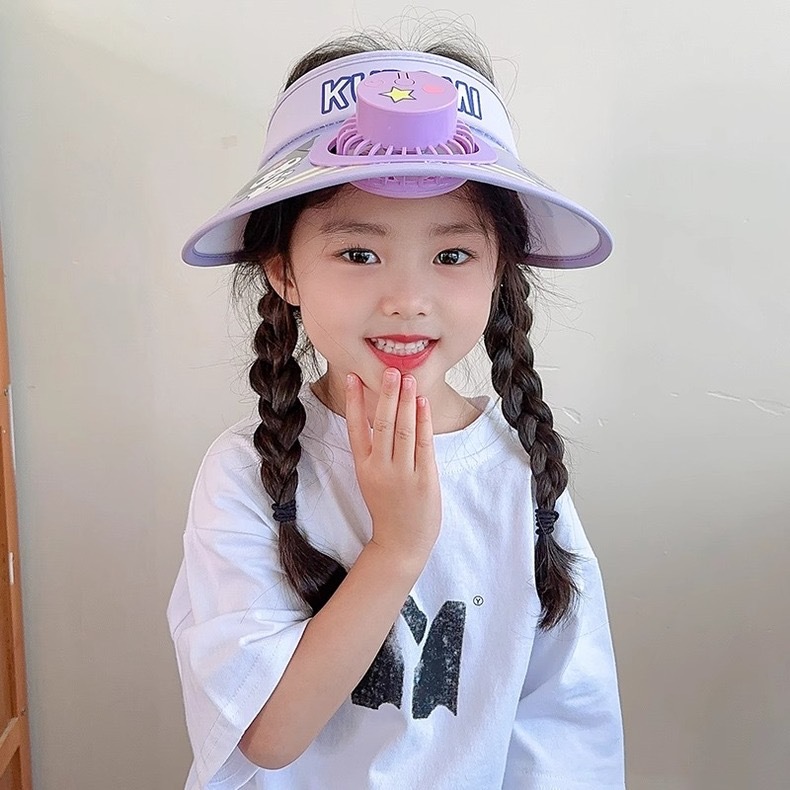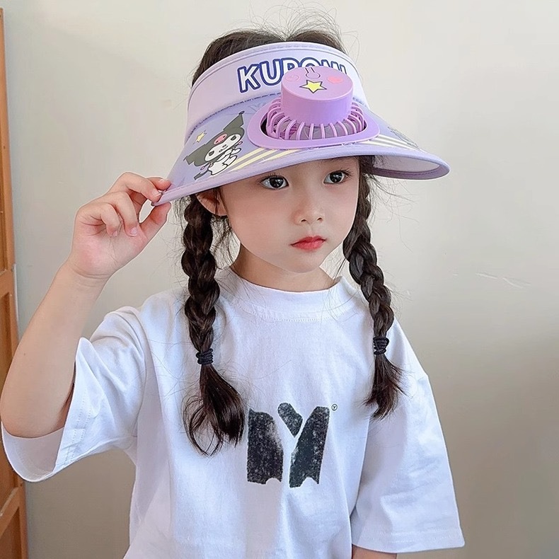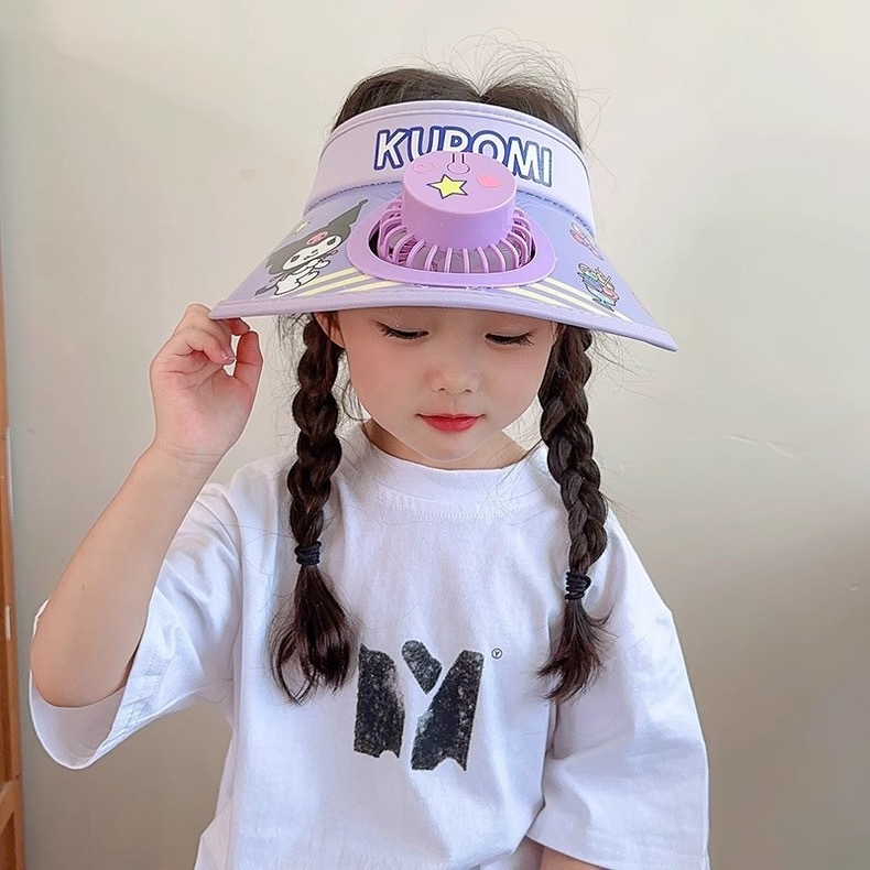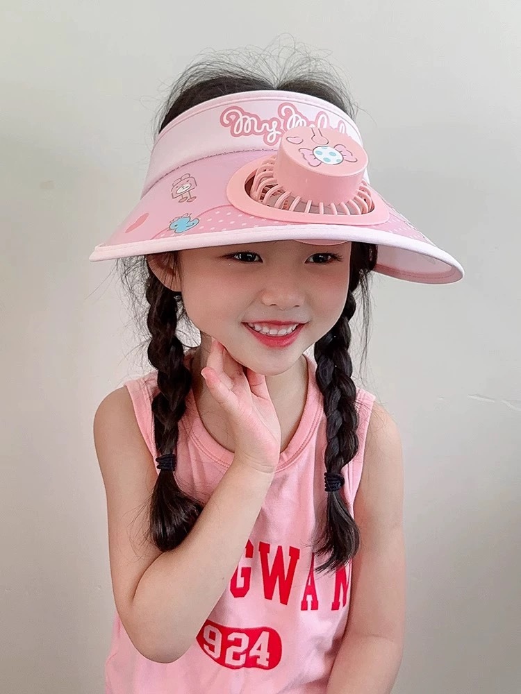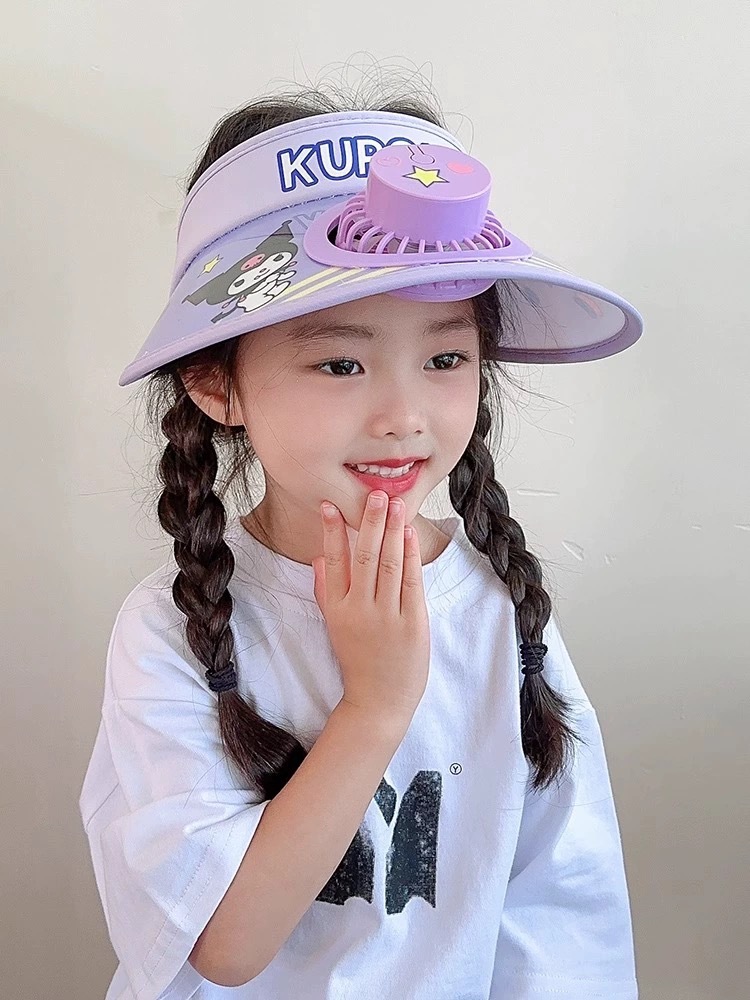 库洛米儿童风扇帽春夏季大帽檐防晒遮阳宝宝男女童户外空顶太阳帽