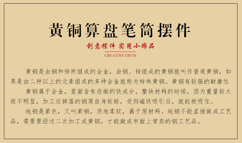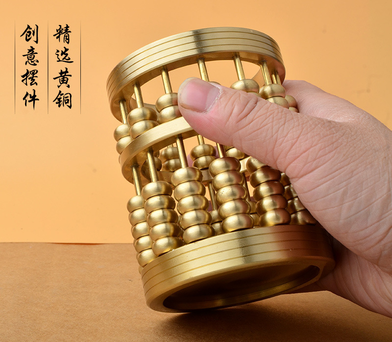 算盘笔筒纯黄铜创意珠算笔筒送礼文房四宝办公用品年会礼品批发