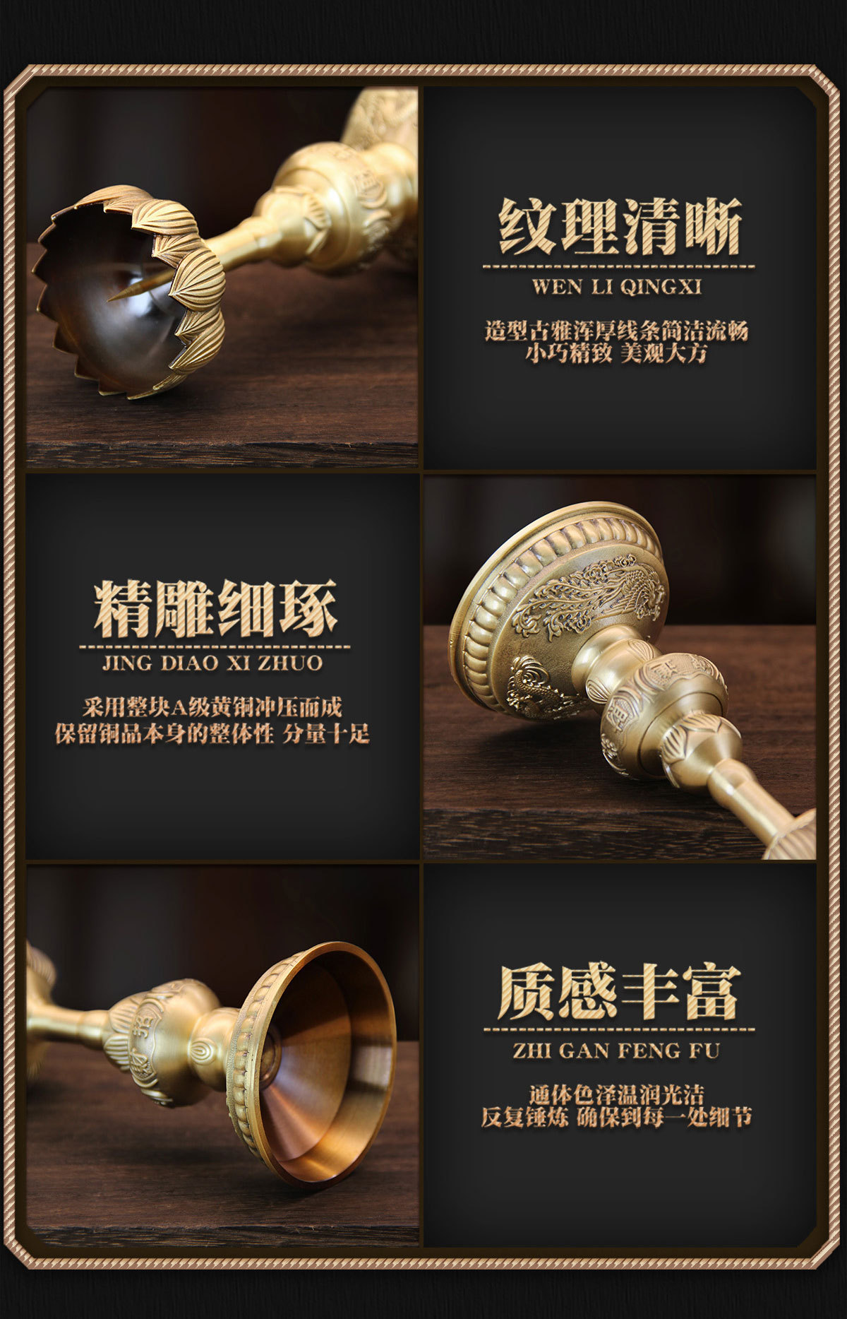 黄铜家用蜡烛台摆件佛堂佛前拜神供奉黄铜蜡烛台底座一对批发