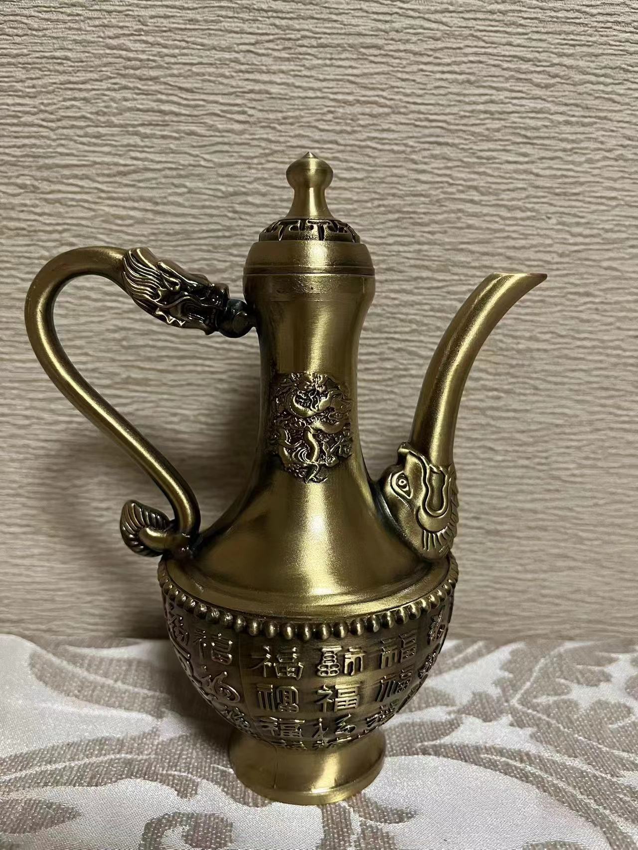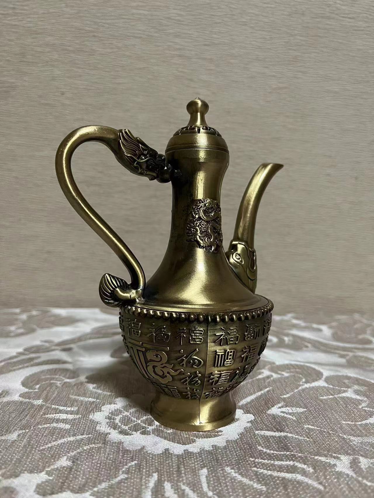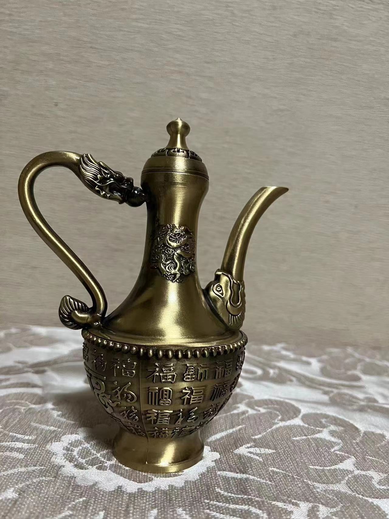 黄铜酒壶摆件百福酒壶双鱼酒壶家居工艺品摆饰佛堂供水摆件批发