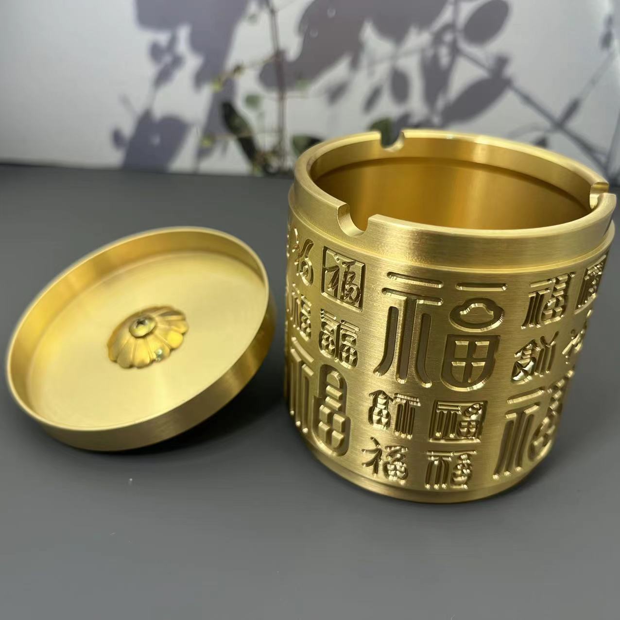 黄铜百福车载烟灰缸家居摆件黄铜工艺品摆件办公室桌面烟灰缸摆件
