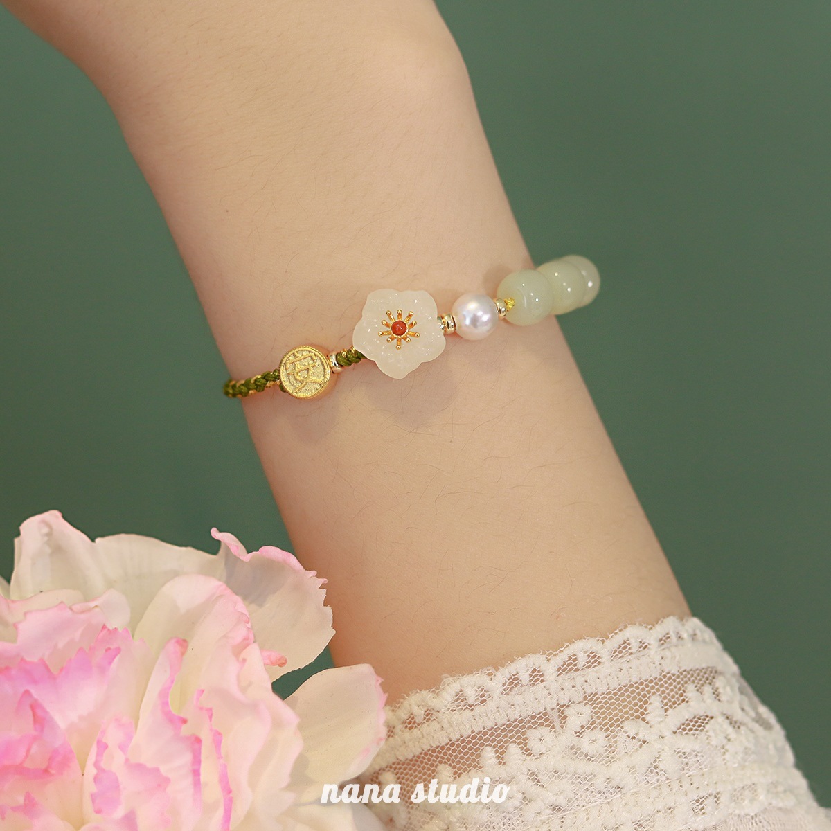 秋季古风手链女防和田玉手串福字中国田园汉服铃铛手镯女送礼闺蜜