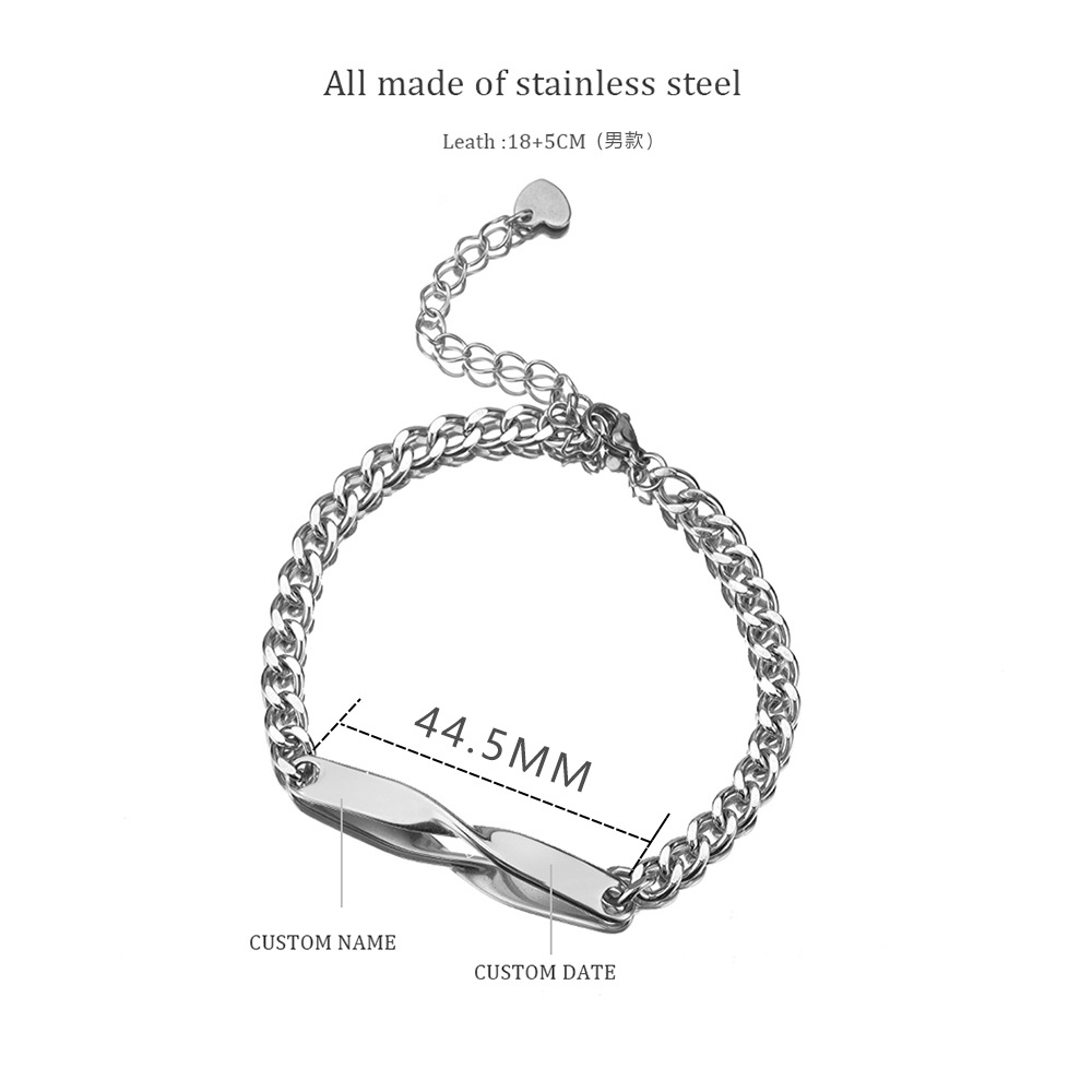 跨境简约不锈钢莫比乌斯情侣diy刻字手链ins无限符号男女纪念礼物