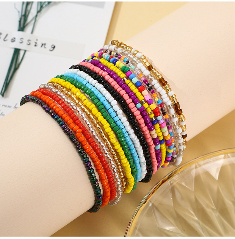 亚马逊手串波西米亚时尚多层手链玻璃珠欧美风手工制作脚链首饰