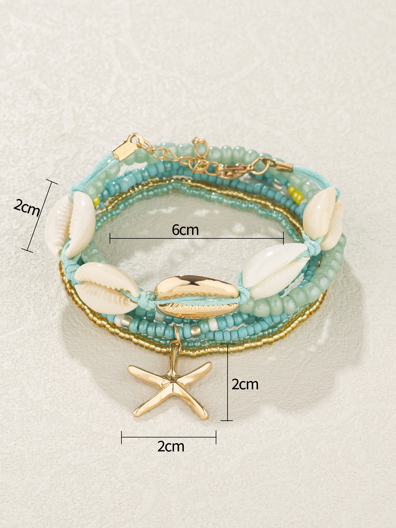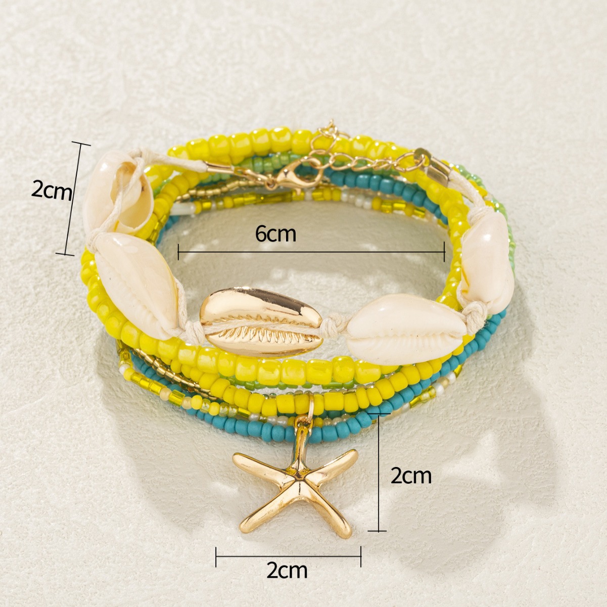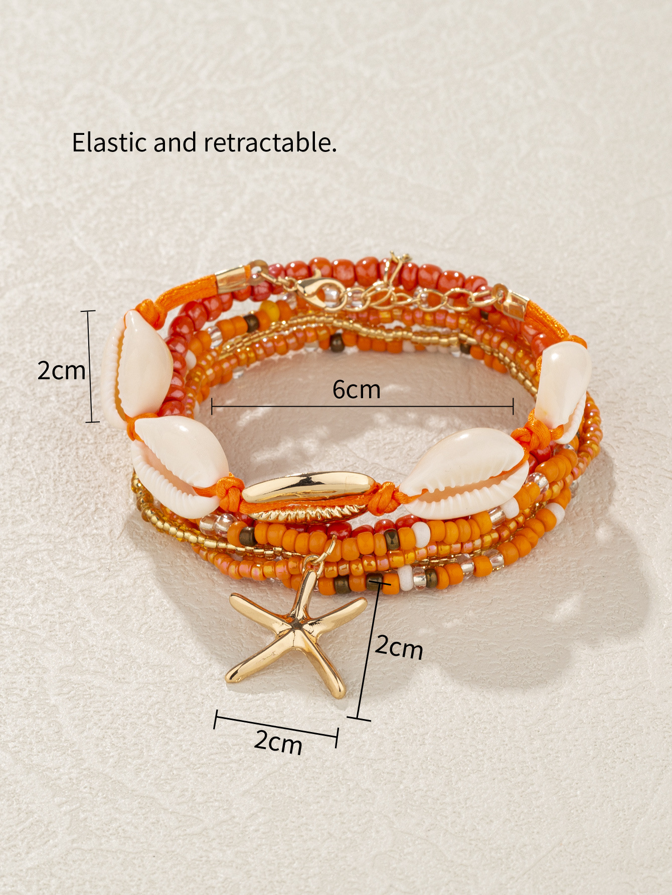 跨境夏日多巴胺海洋沙滩海星贝壳米珠手链波西米亚贝壳米珠多层手