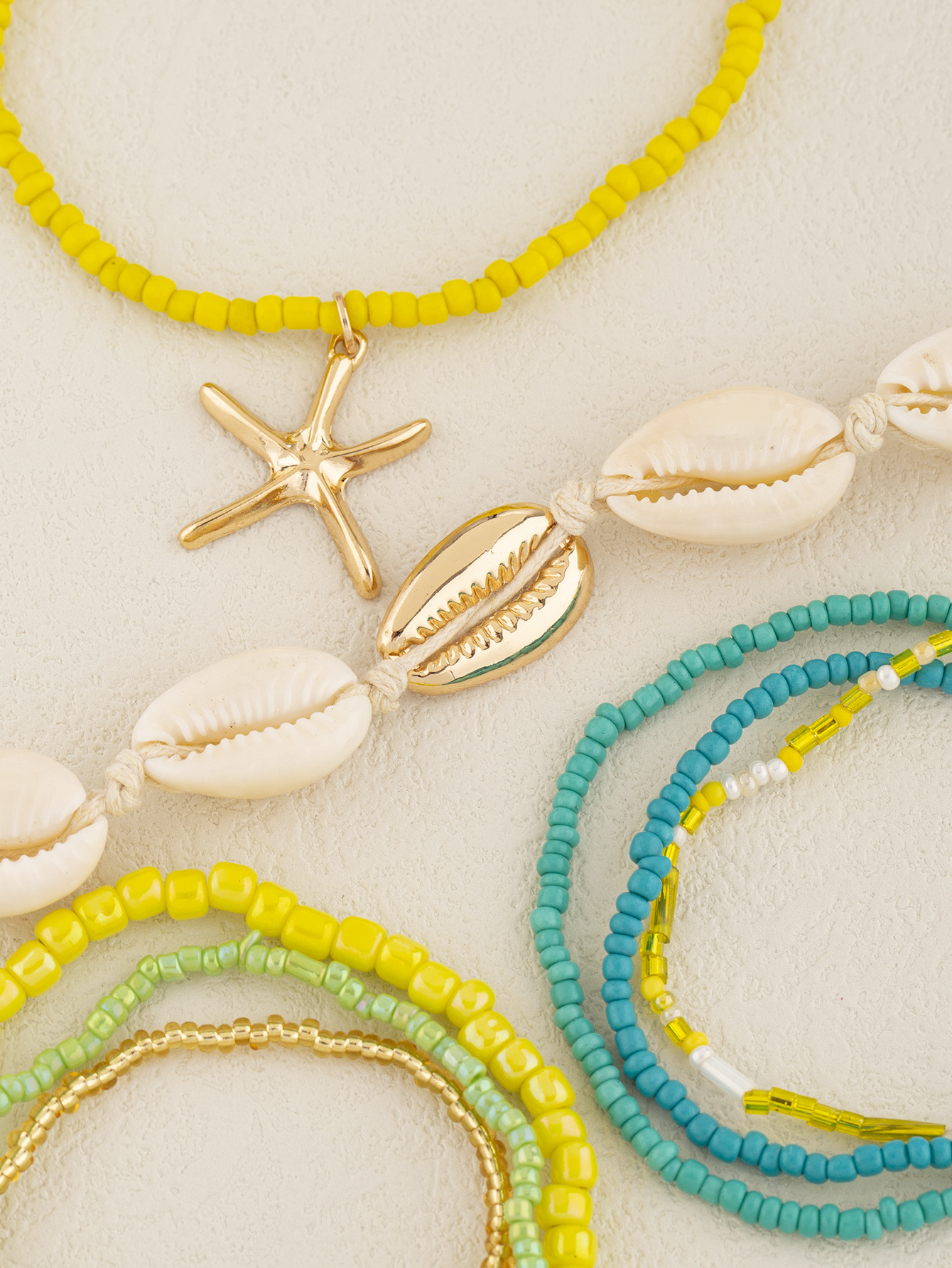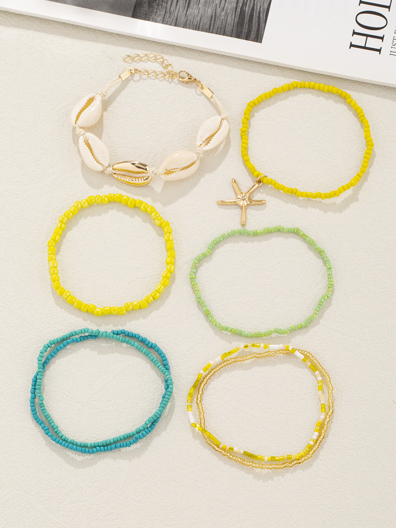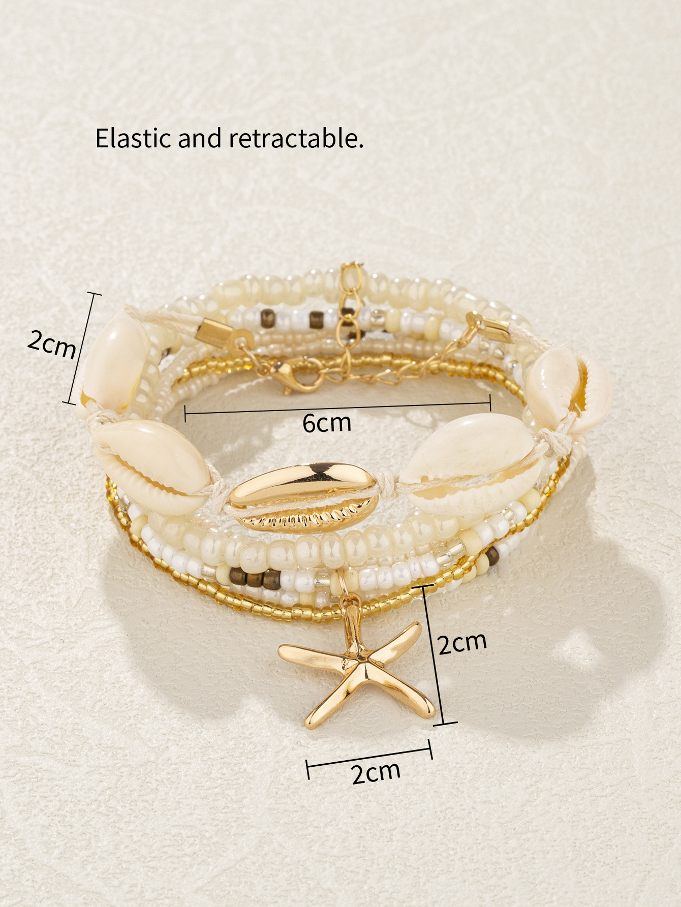跨境夏日多巴胺海洋沙滩海星贝壳米珠手链波西米亚贝壳米珠多层手