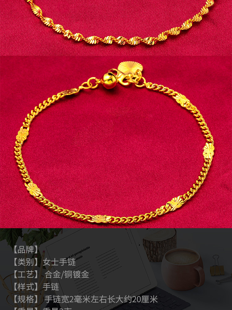 2023新款跨境电商手链毛毛虫女士水波纹O珠链女款沙金手串手链