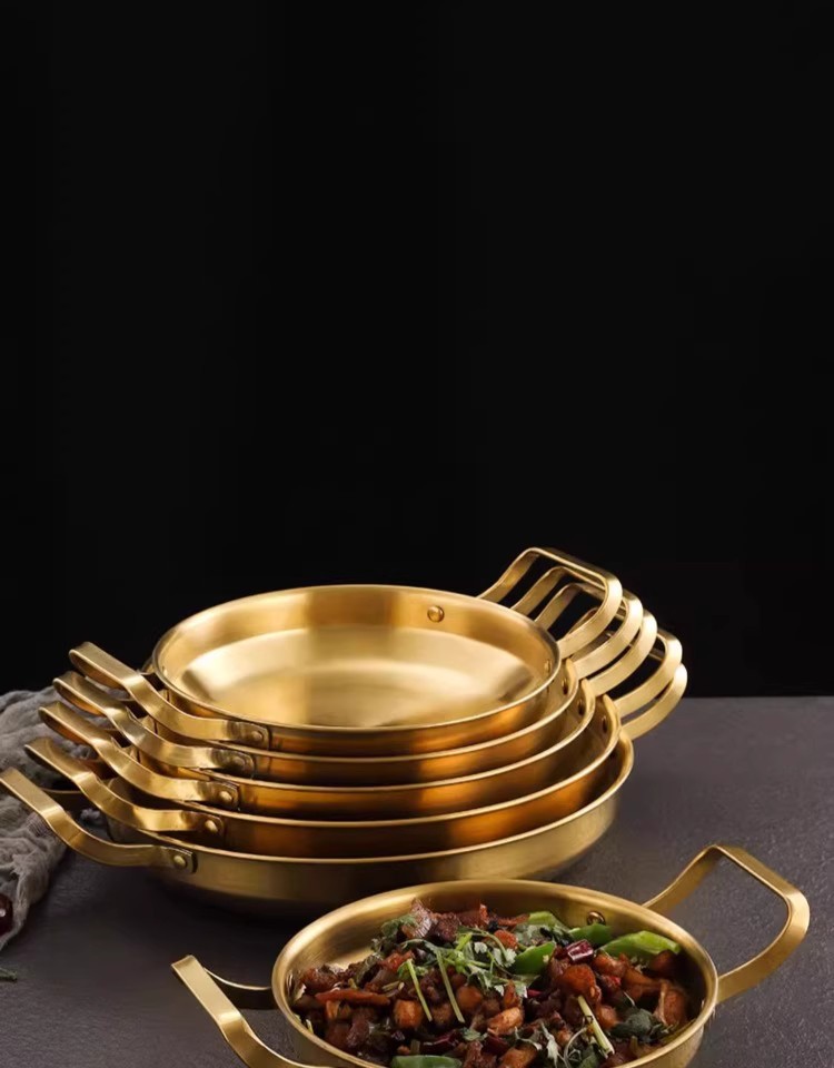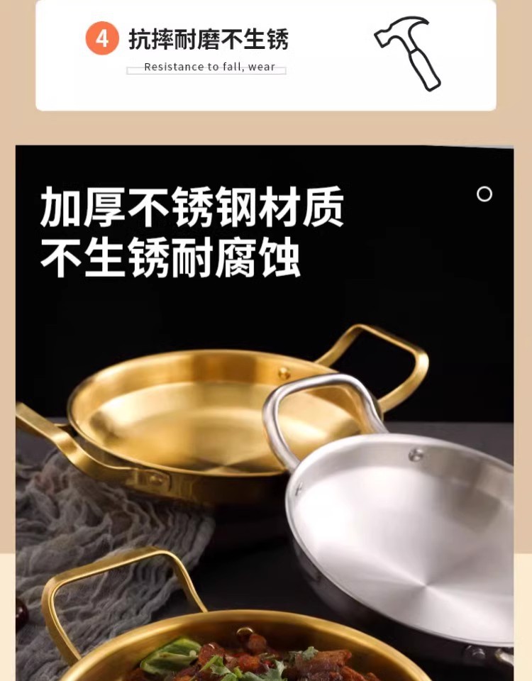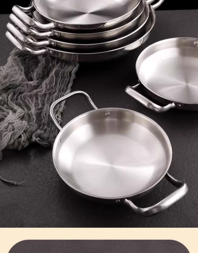 贸点工厂直营MD-G028加厚不锈钢港式干锅双耳平底干锅饭店盆炒锅