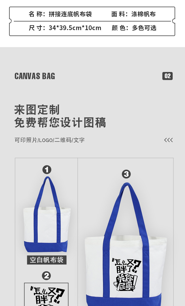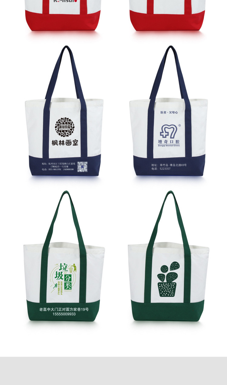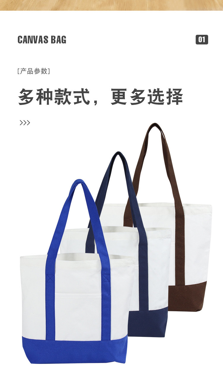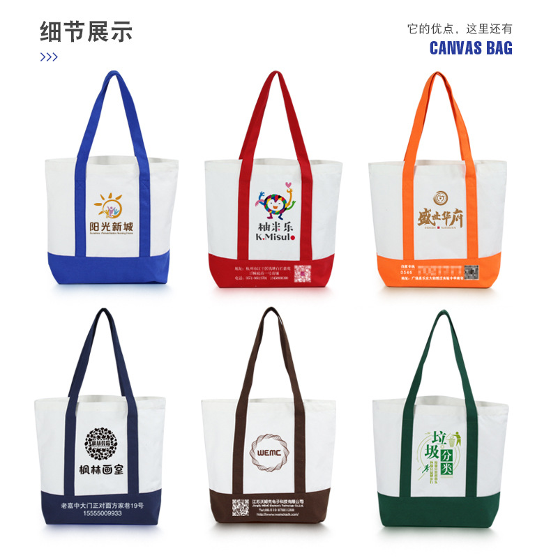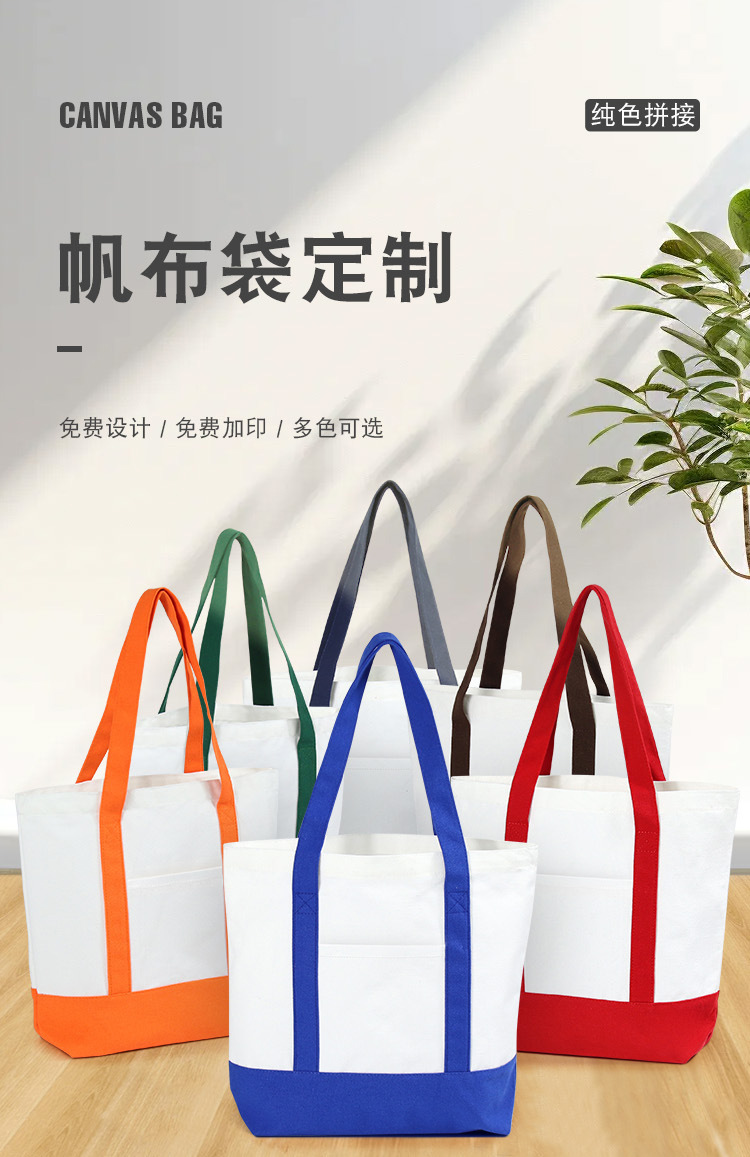 彩色手提拼接帆布袋定 制logo手提纯色帆布包可折叠收纳布包定 做