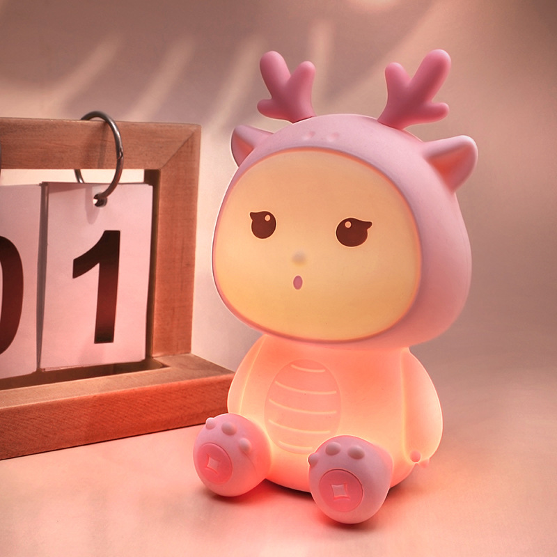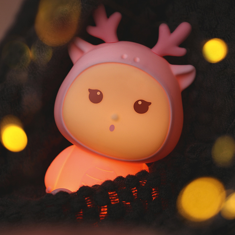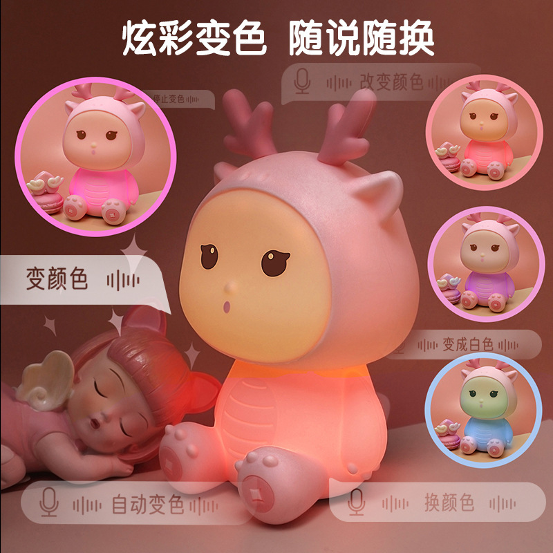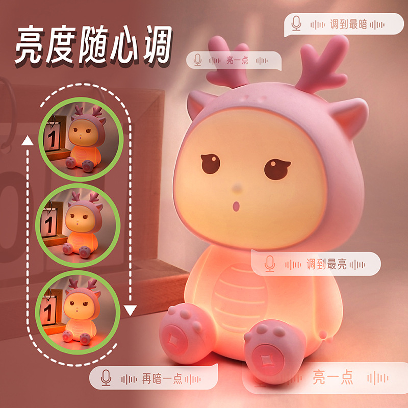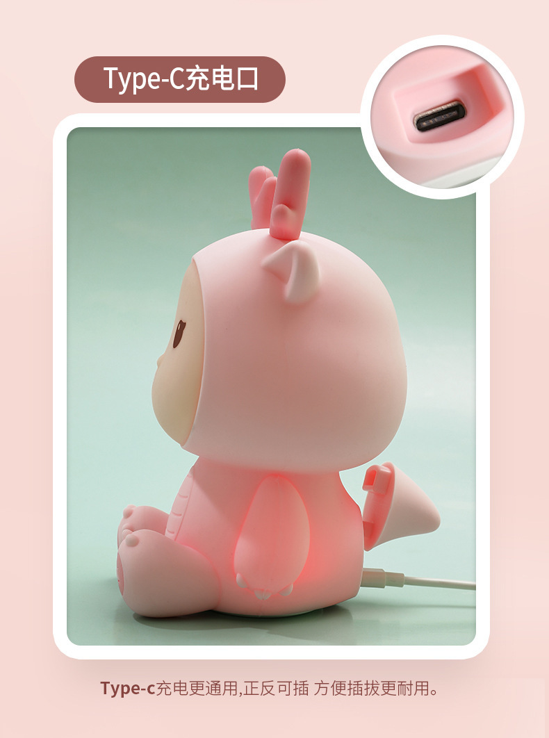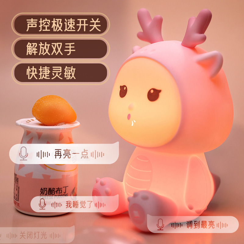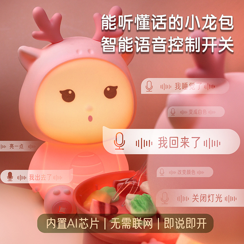 新款小龙宝硅胶小夜灯USB充电卧室床头伴睡灯语音七彩氛围灯礼物