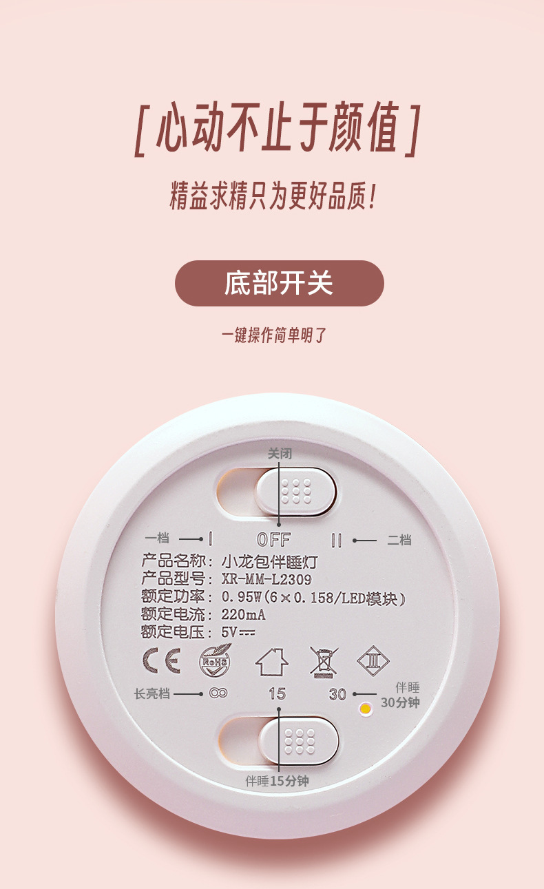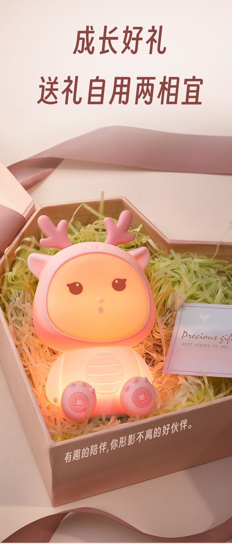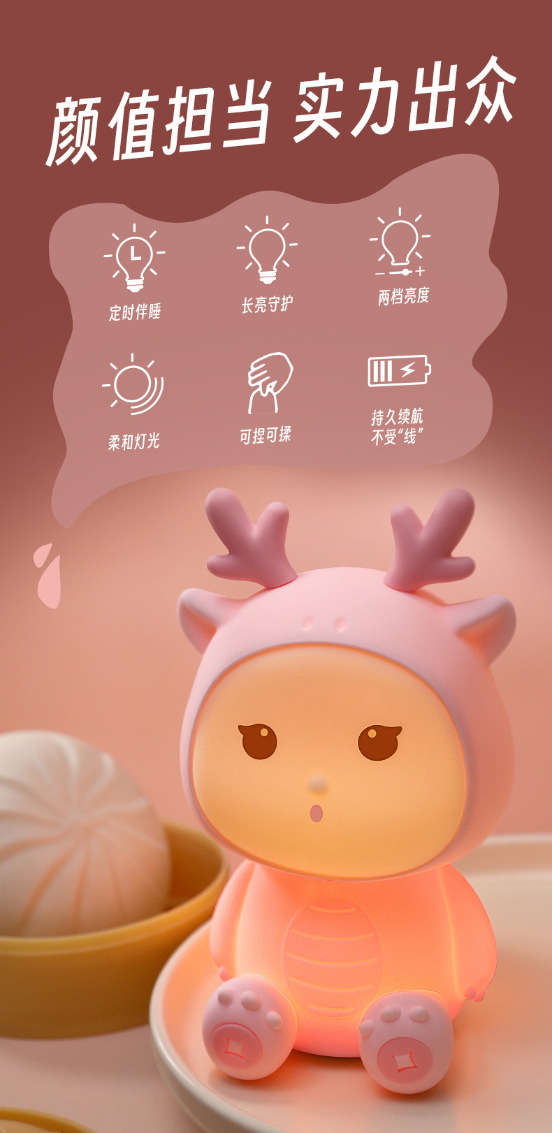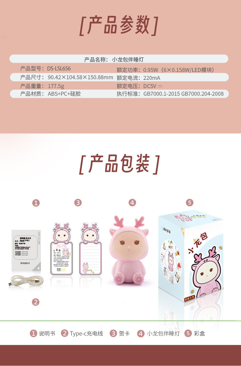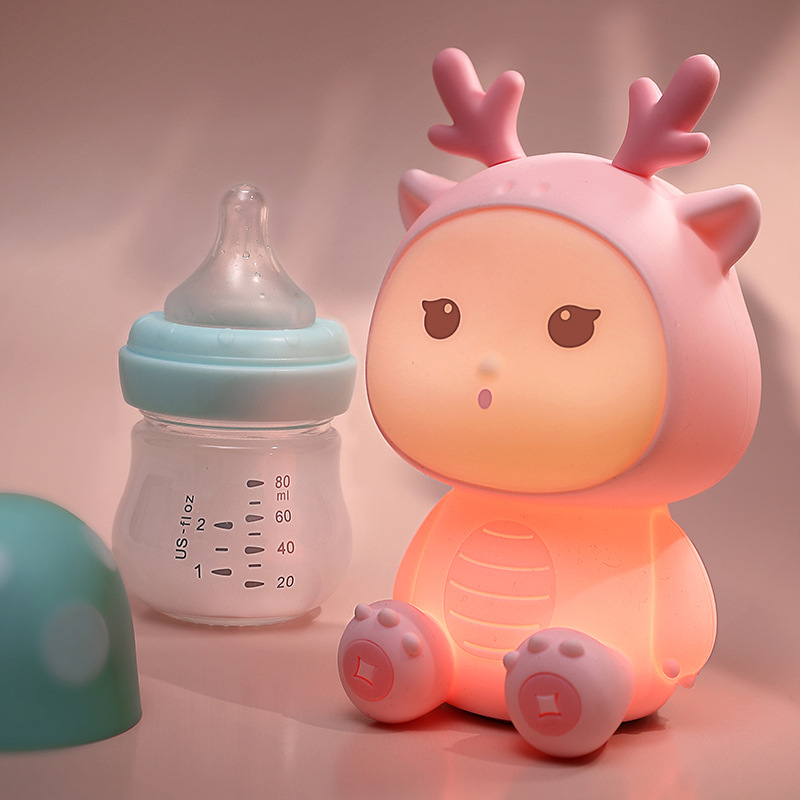 新款小龙宝硅胶小夜灯USB充电卧室床头伴睡灯语音七彩氛围灯礼物