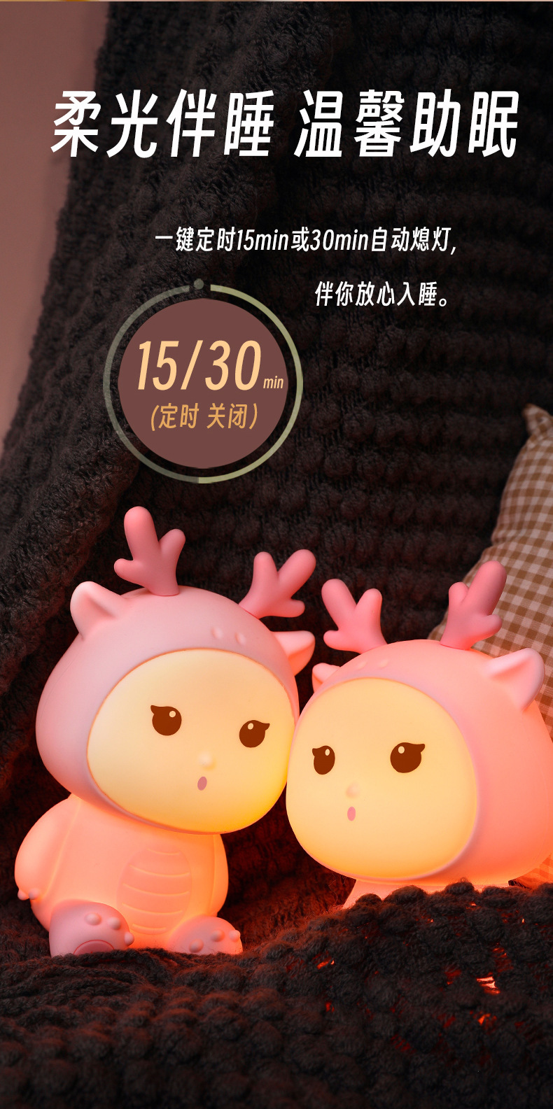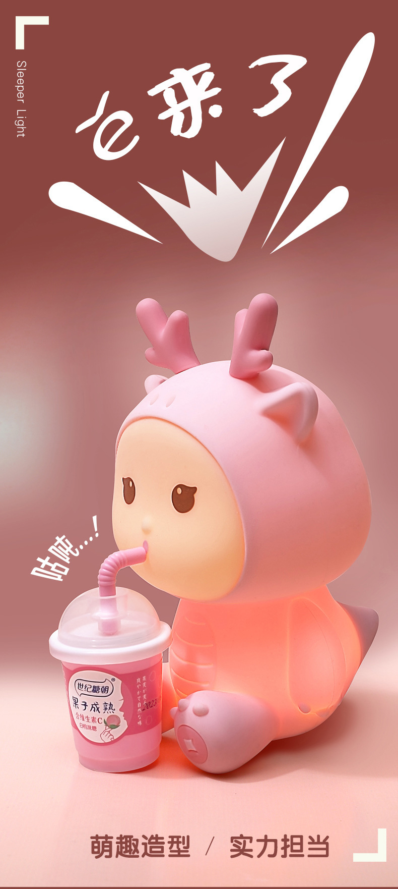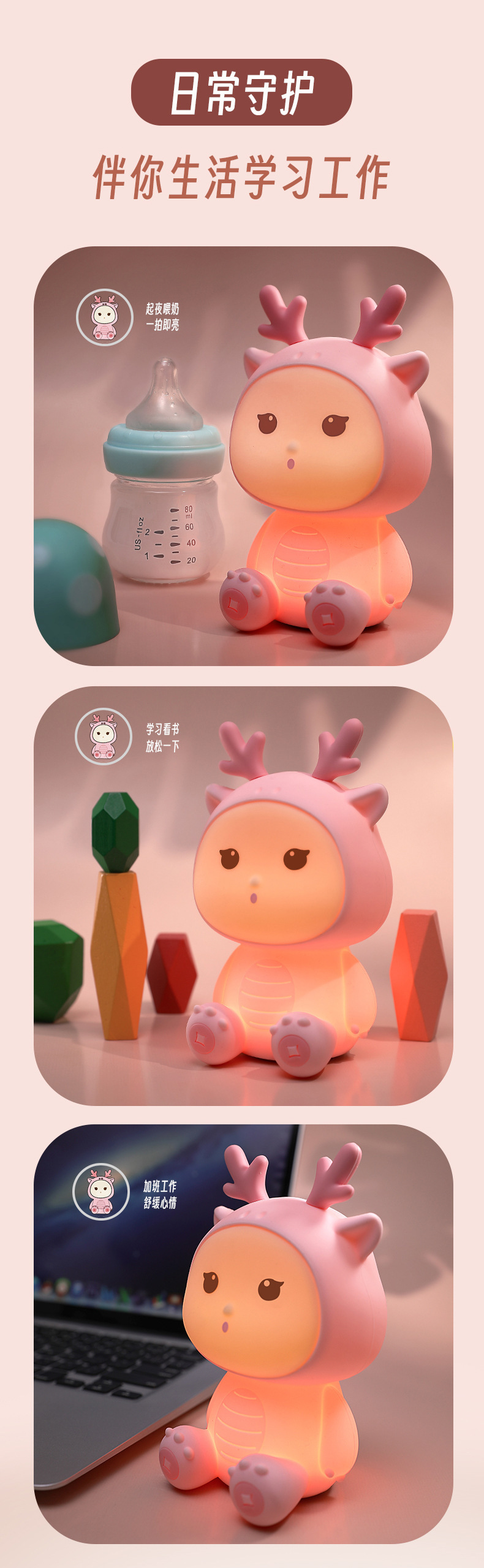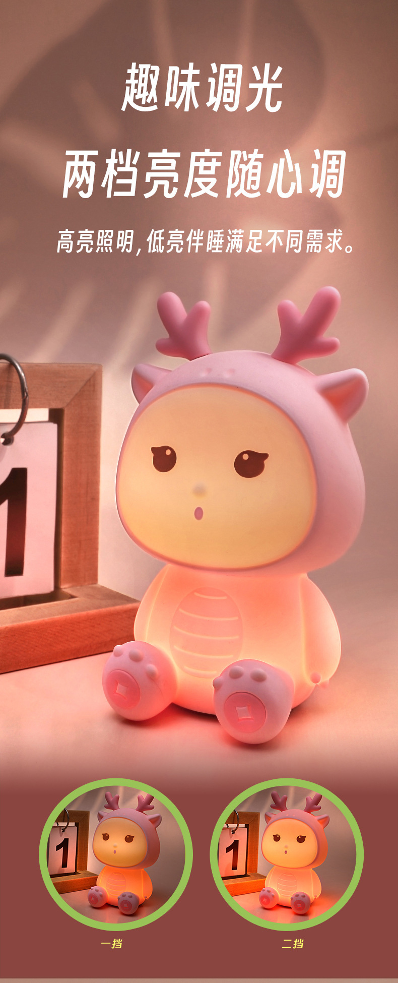 新款小龙宝硅胶小夜灯USB充电卧室床头伴睡灯语音七彩氛围灯礼物