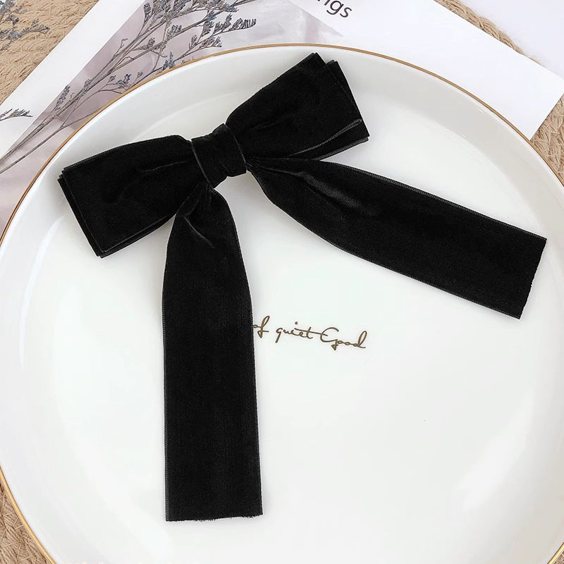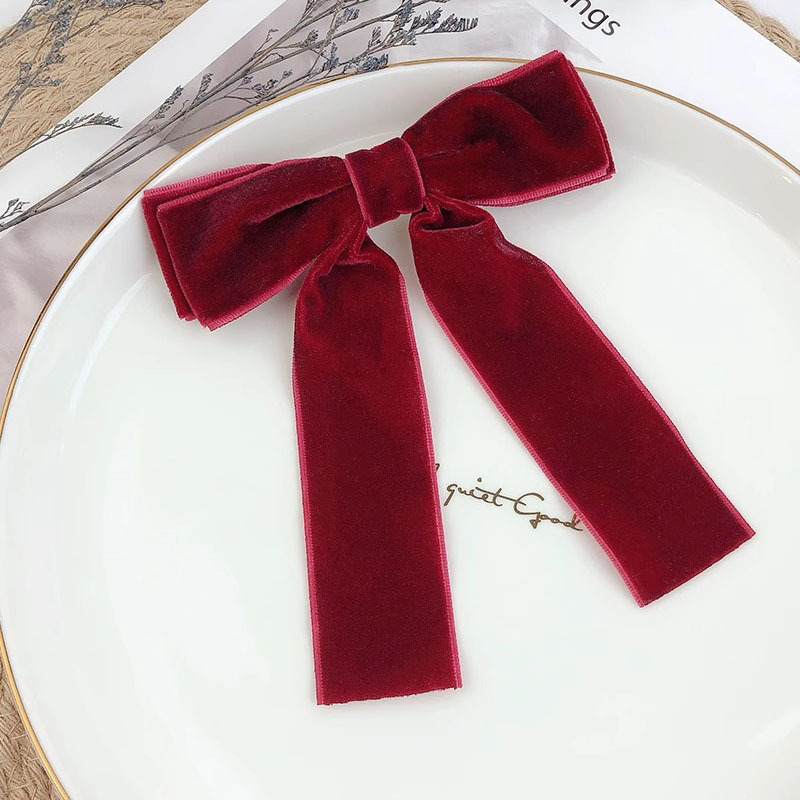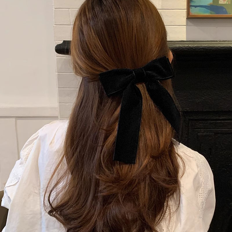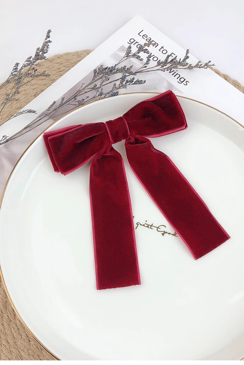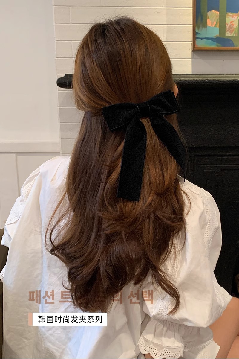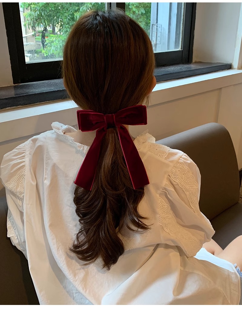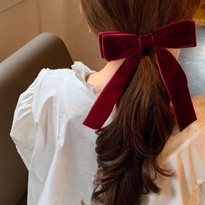 丝绒高级感~蝴蝶结发夹红色头饰少女发带长飘带发饰丝带发卡夹子