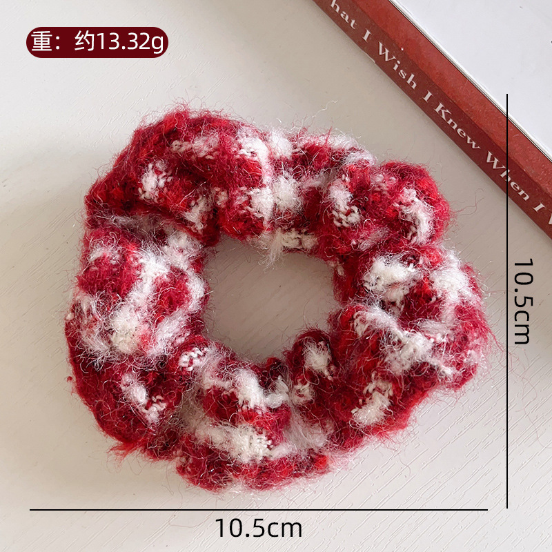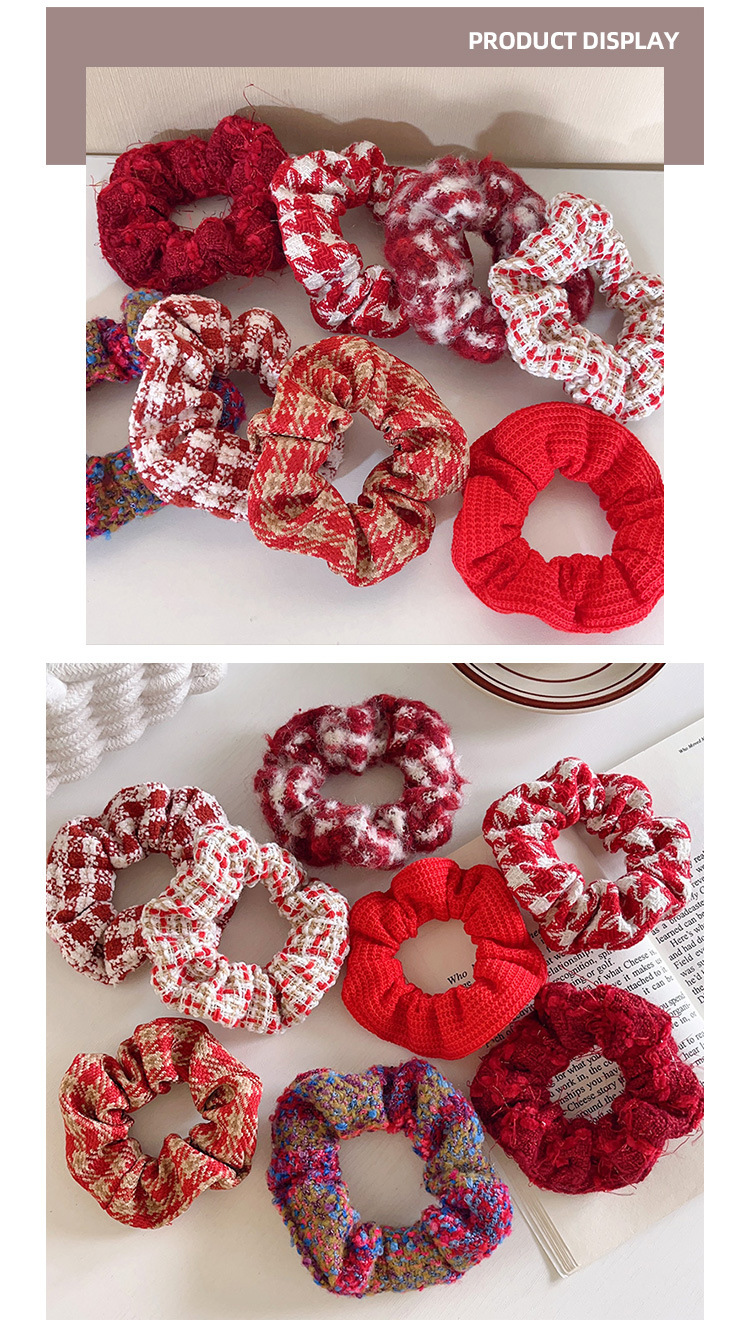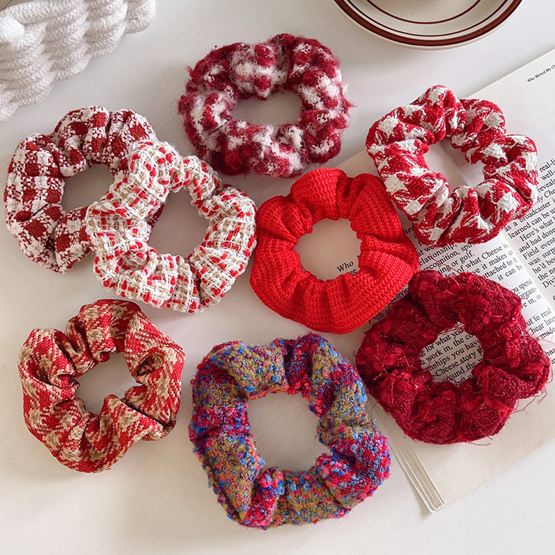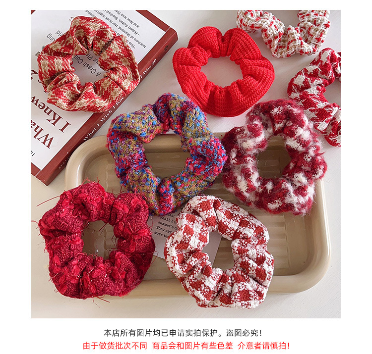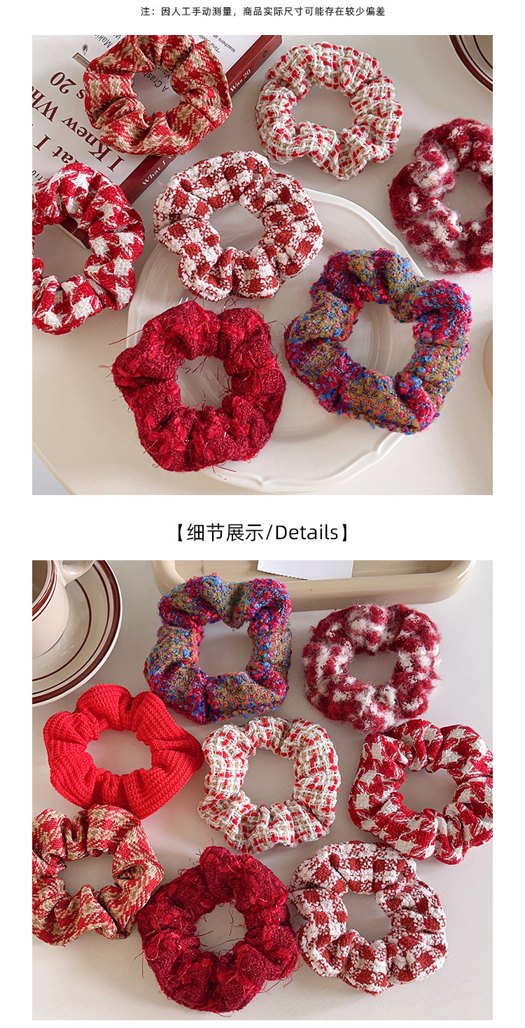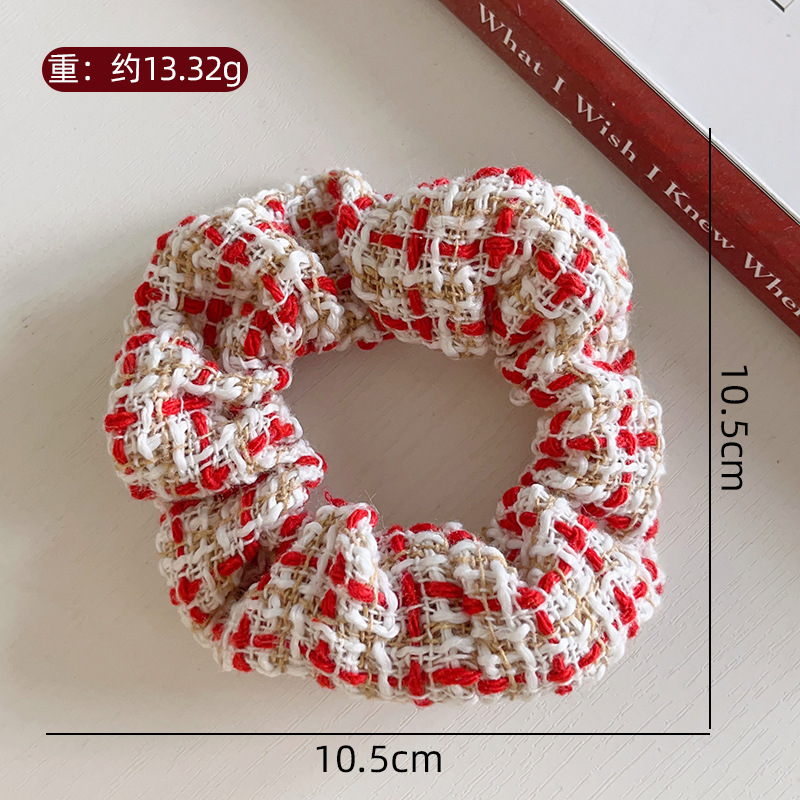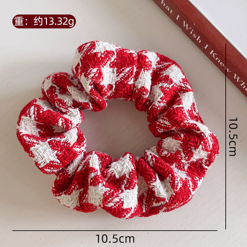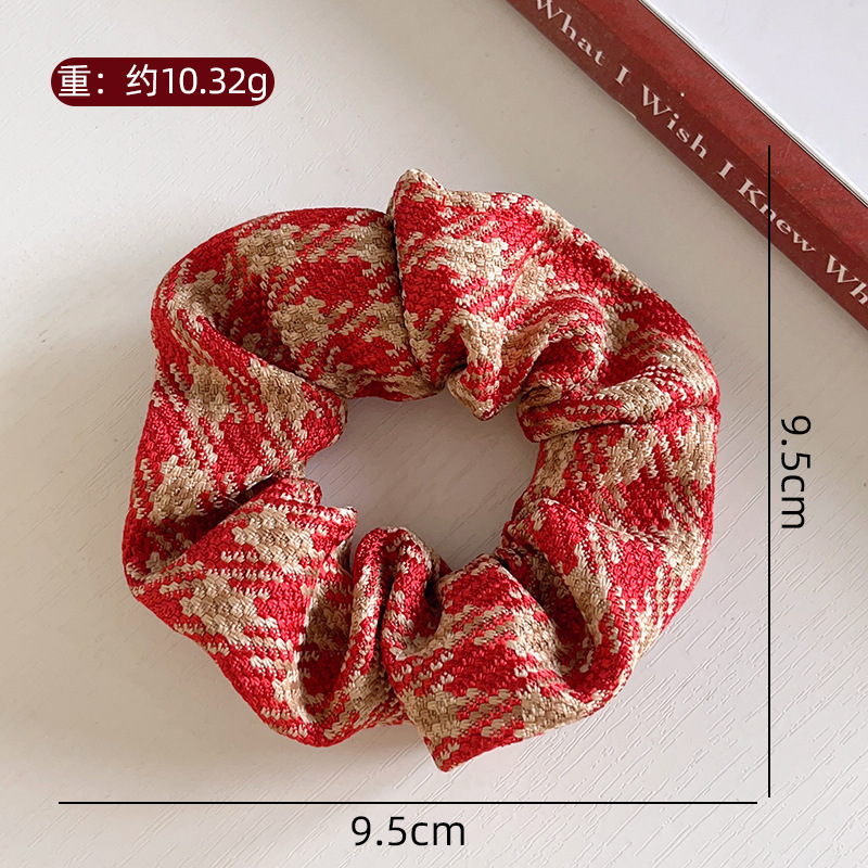2024龙年发圈新春喜庆格纹大肠圈布艺毛线扎头发发绳小香风肥肠圈