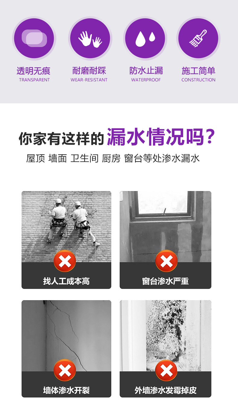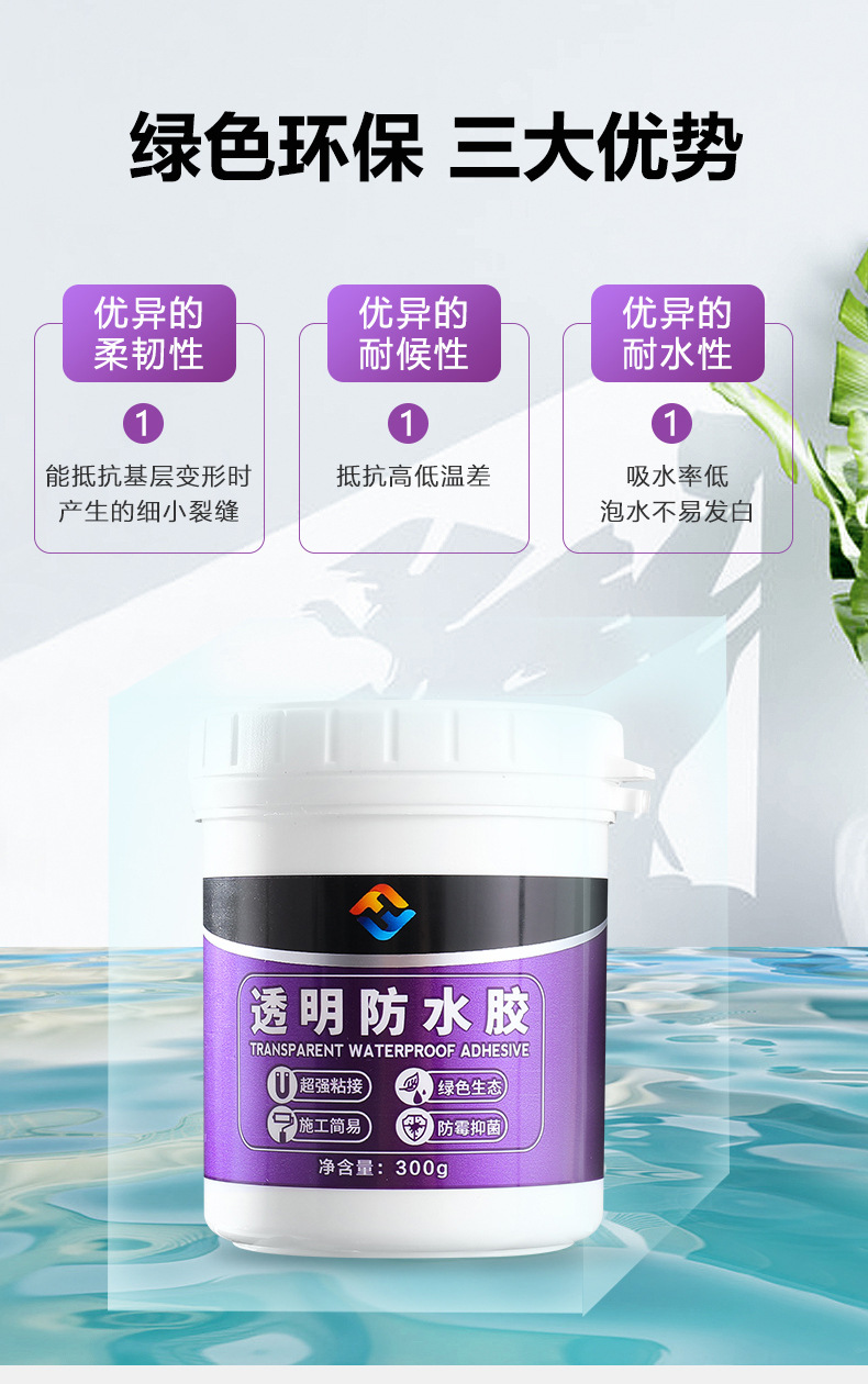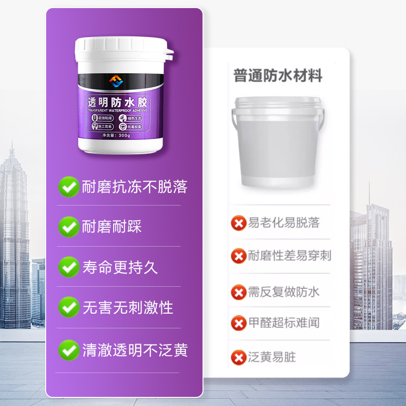 透明防水胶卫生间防水涂料厨房外墙免砸砖专用胶屋顶漏水补漏胶