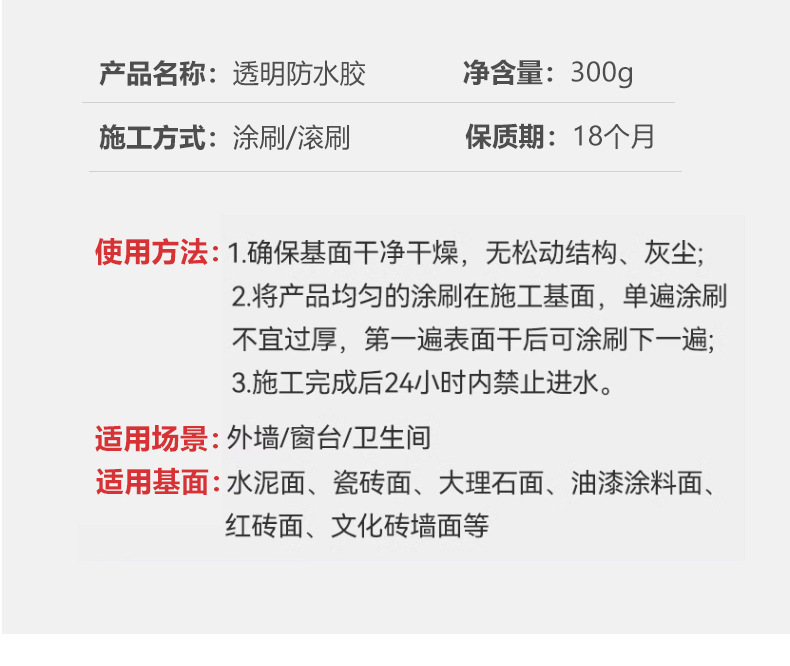 | transparent; waterproof adhesive 300g [free special brush]](透明;防水胶300g【赠专用毛刷】) | USD $0.9 | 4161082 barrel available |