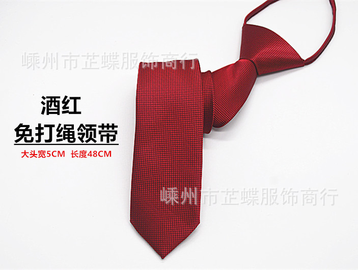免打男士绳领带黑色酒红色易拉得女生正装红色领带结婚纯色