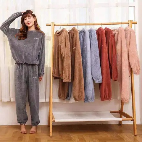新款睡衣秋冬仙女套装珊瑚绒居家睡衣懒人法兰绒家居服工厂直销