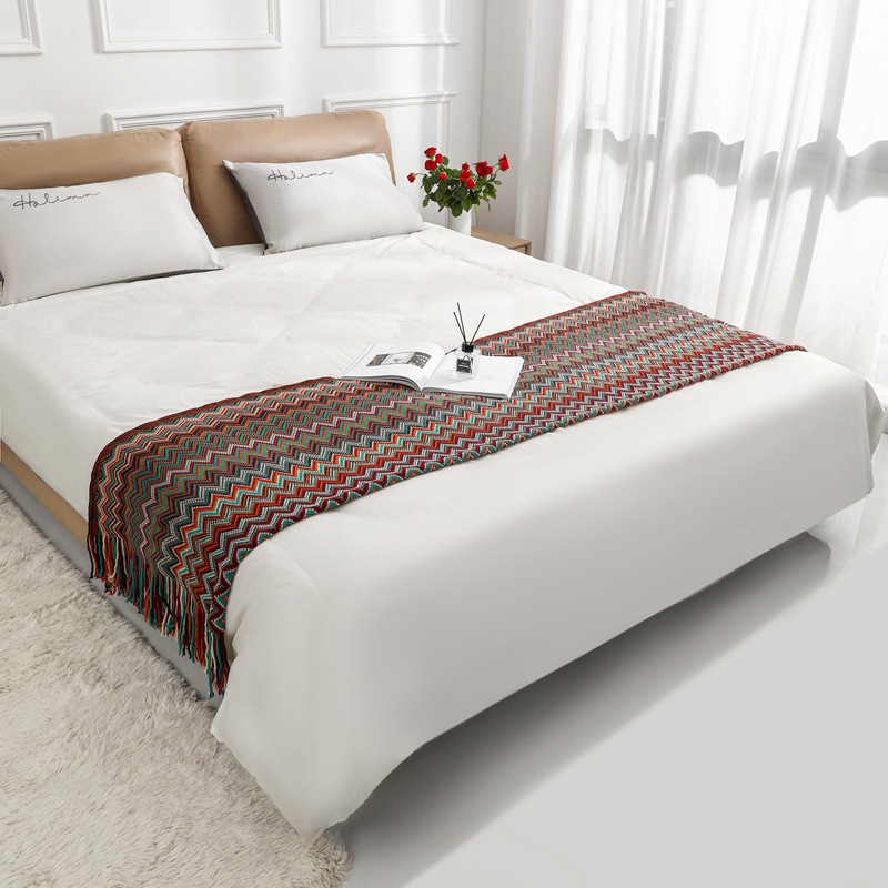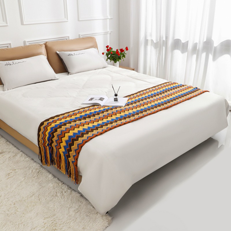 北欧菱形针织毛线毯子床尾毯展厅搭巾沙发毯装饰毯民宿装饰空调毯