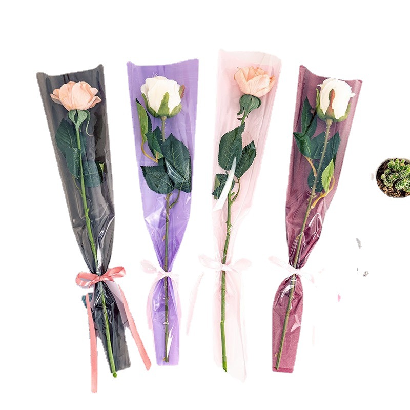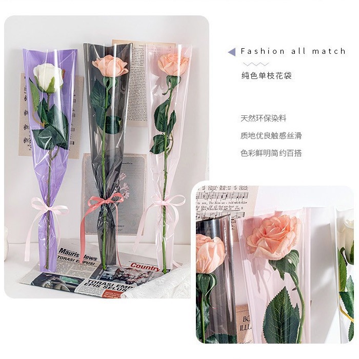 情人节纯色花束包装袋加厚防水透明玫瑰花diy袋love鲜花包装袋