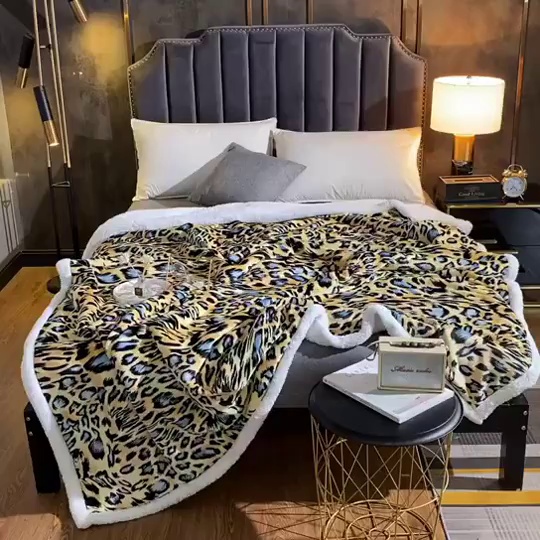 工厂批发季新品法兰绒双层羊羔绒毯豹纹系列加厚复合沙发盖毯