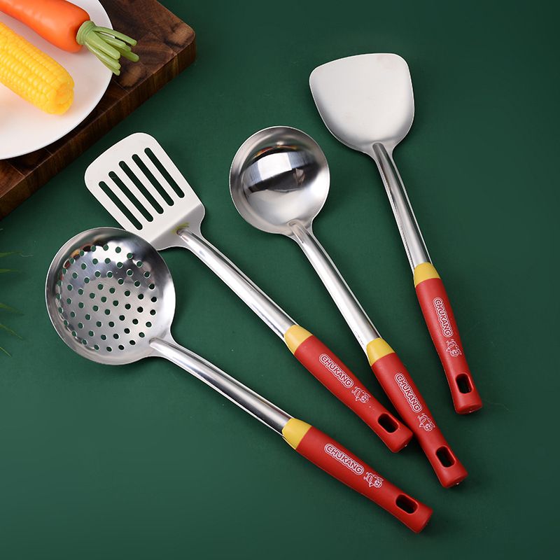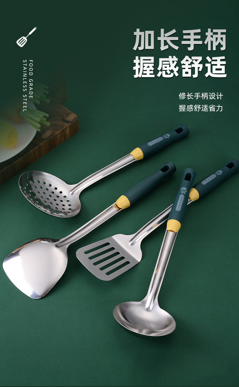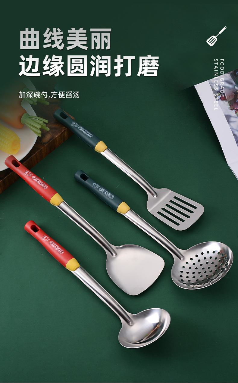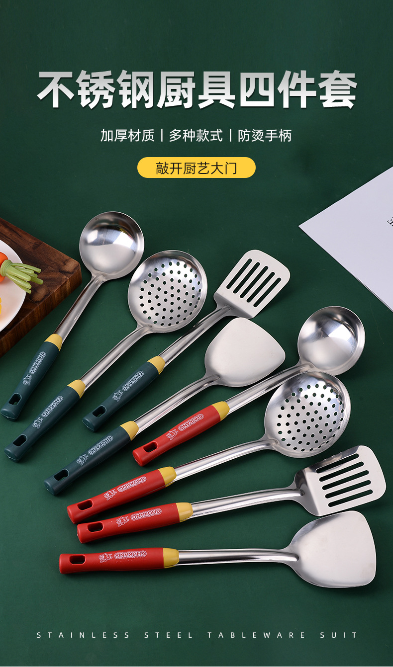 不锈钢汤勺煎漏铲大漏勺隔热手柄厨房厨具炒菜四件套装厂家批发