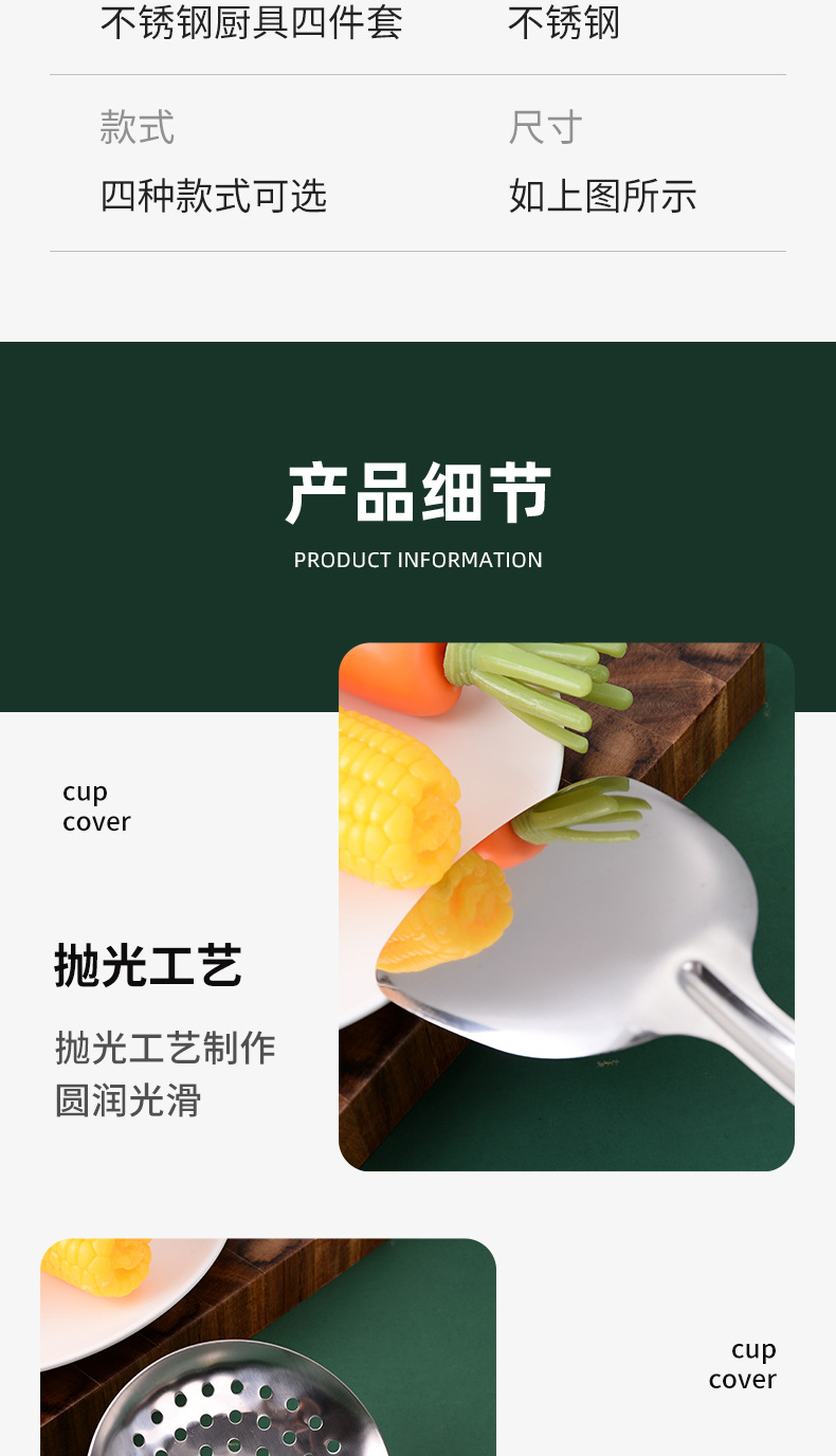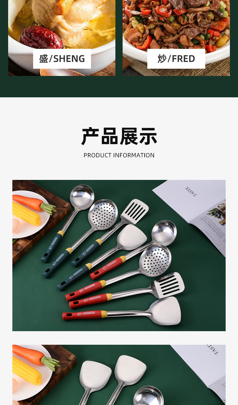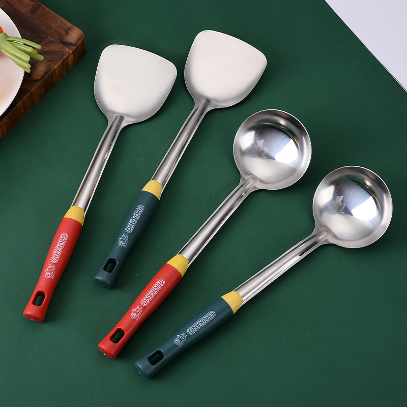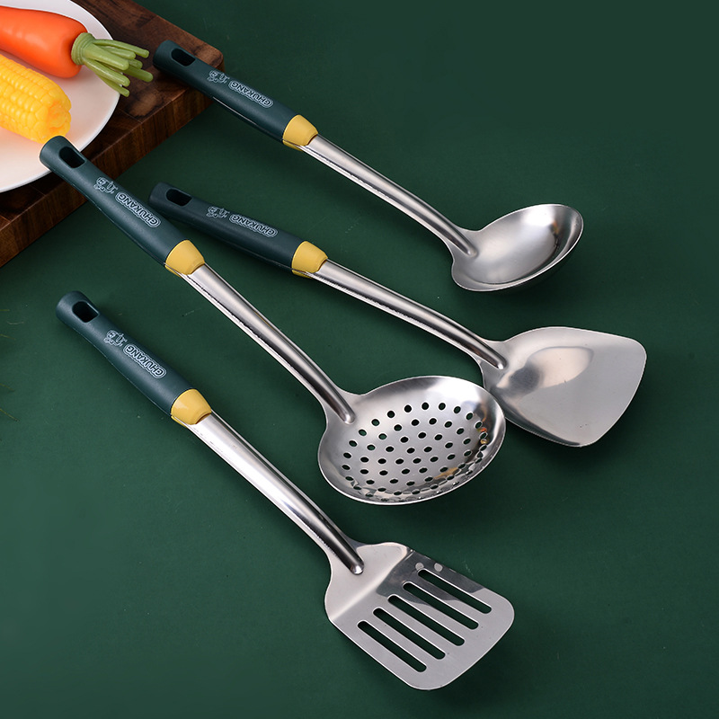 不锈钢汤勺煎漏铲大漏勺隔热手柄厨房厨具炒菜四件套装厂家批发