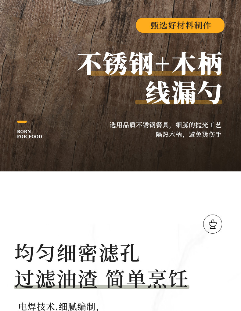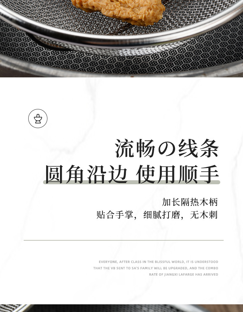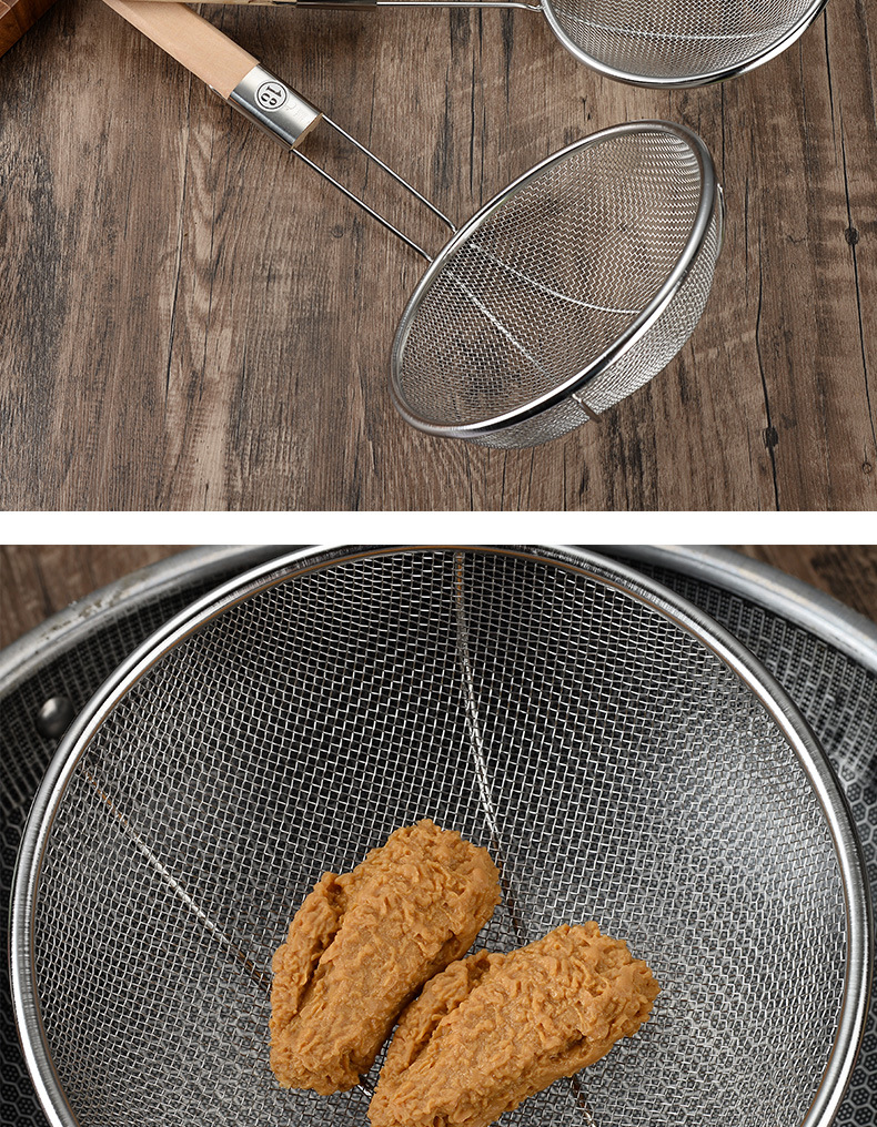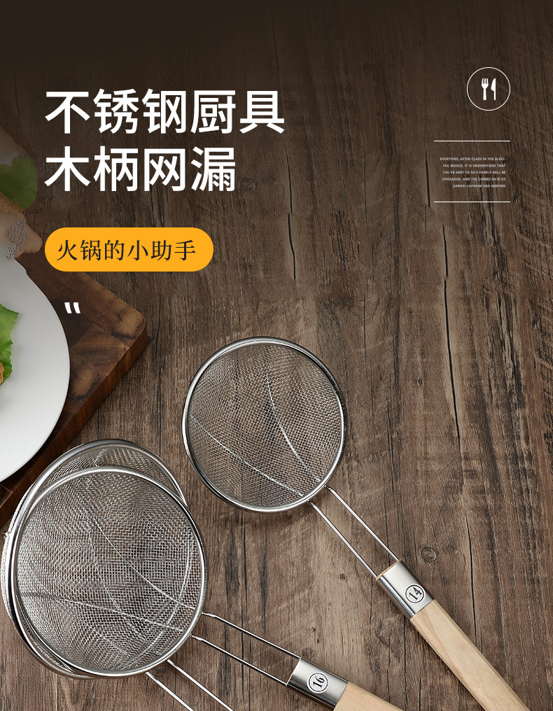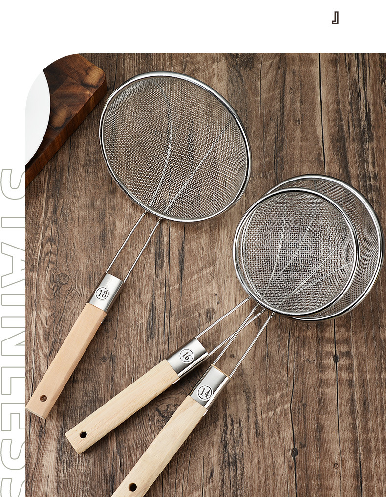 不锈钢打沫漏勺过滤细网漏筛木柄家用网厨房捞油沫勺大过滤筛批发