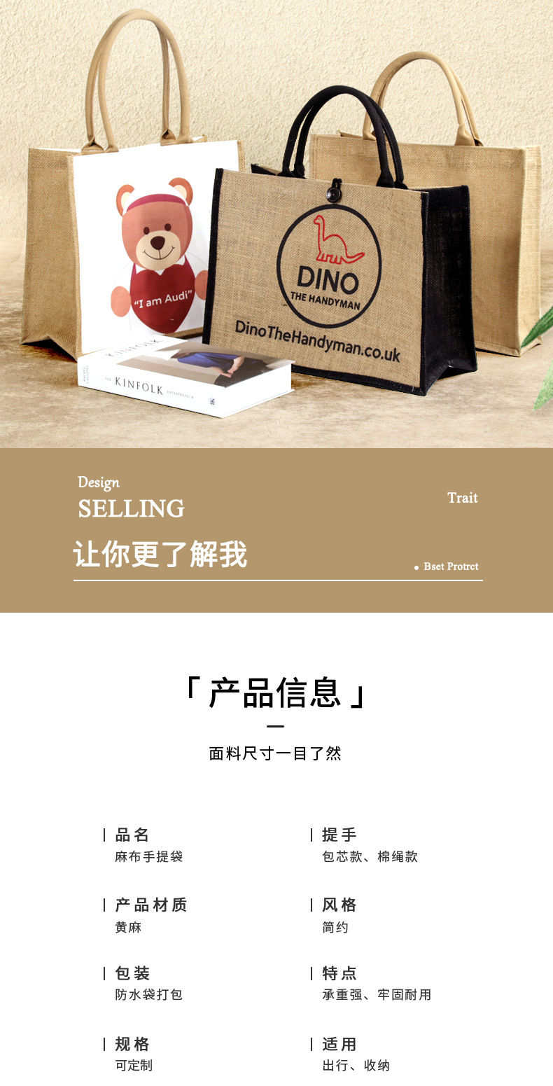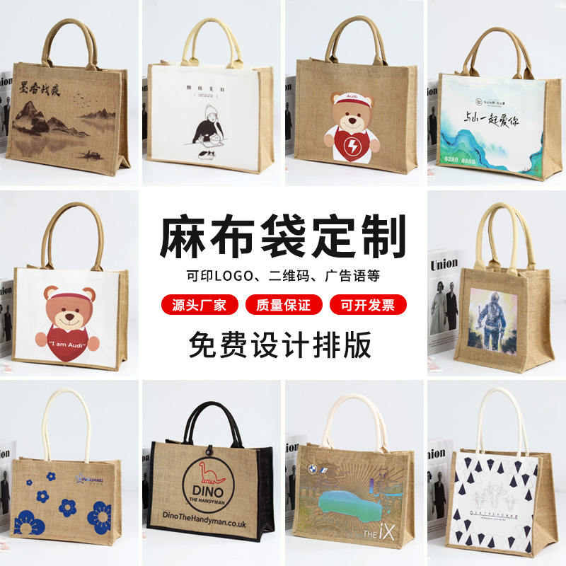 麻布袋现货可印LOGO黄麻手提袋亚麻复古黄麻袋定制麻布包棉麻定做