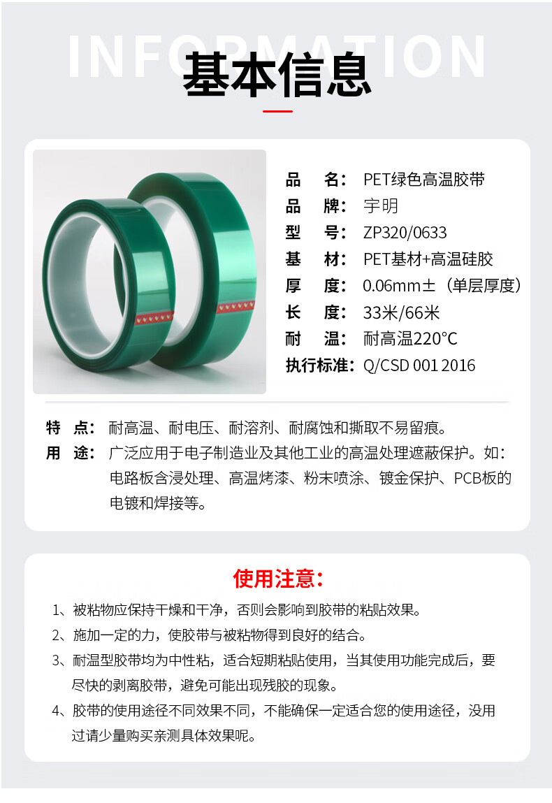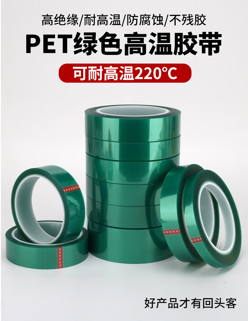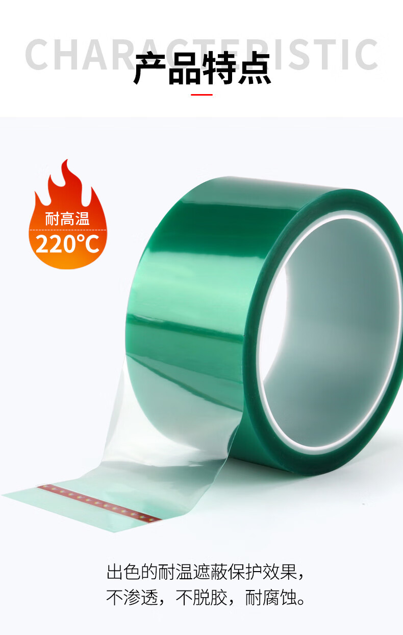 跨境工业绿色耐高温胶带电镀保护防静电硅胶绝缘高粘无痕遮蔽胶带