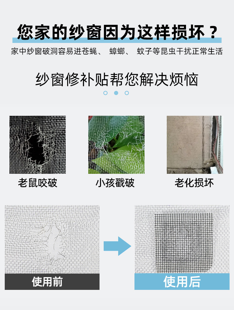 跨境纱窗修补贴纱窗防蚊虫破洞修复魔术贴自粘高粘不残胶纱窗胶带