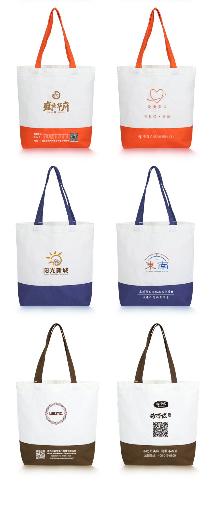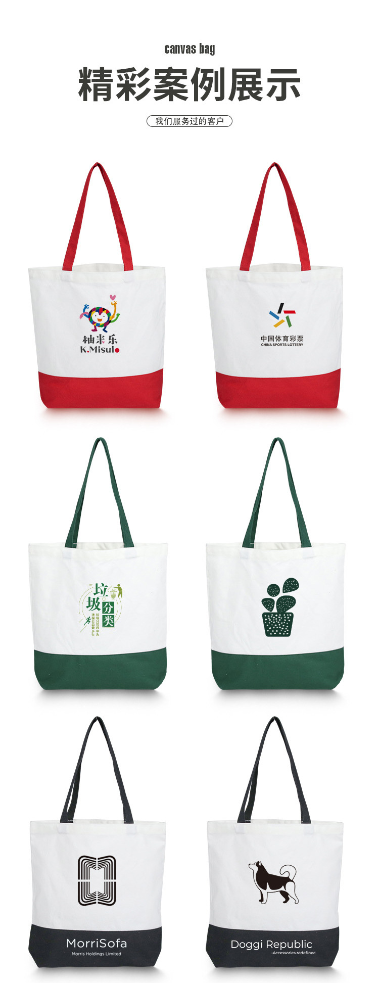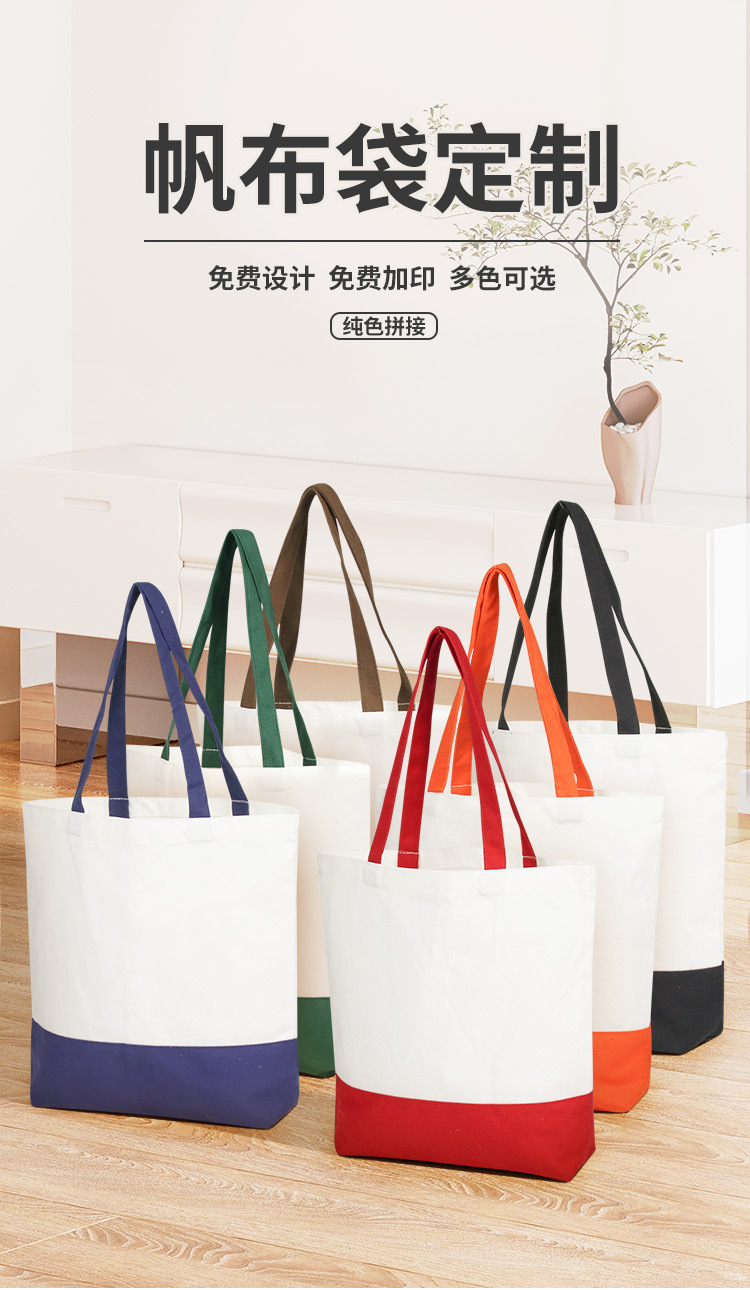彩色手提拼接帆布袋定制logo 手提购物棉布袋 广告培训帆布包定做